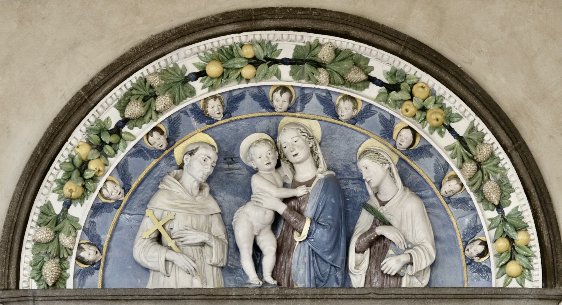Finalmente è giunto al termine il restauro delle due lunette poste sotto al loggiato d’ingresso dell’Accademia di Belle arti di Firenze, attribuite ad Andrea della Robbia.