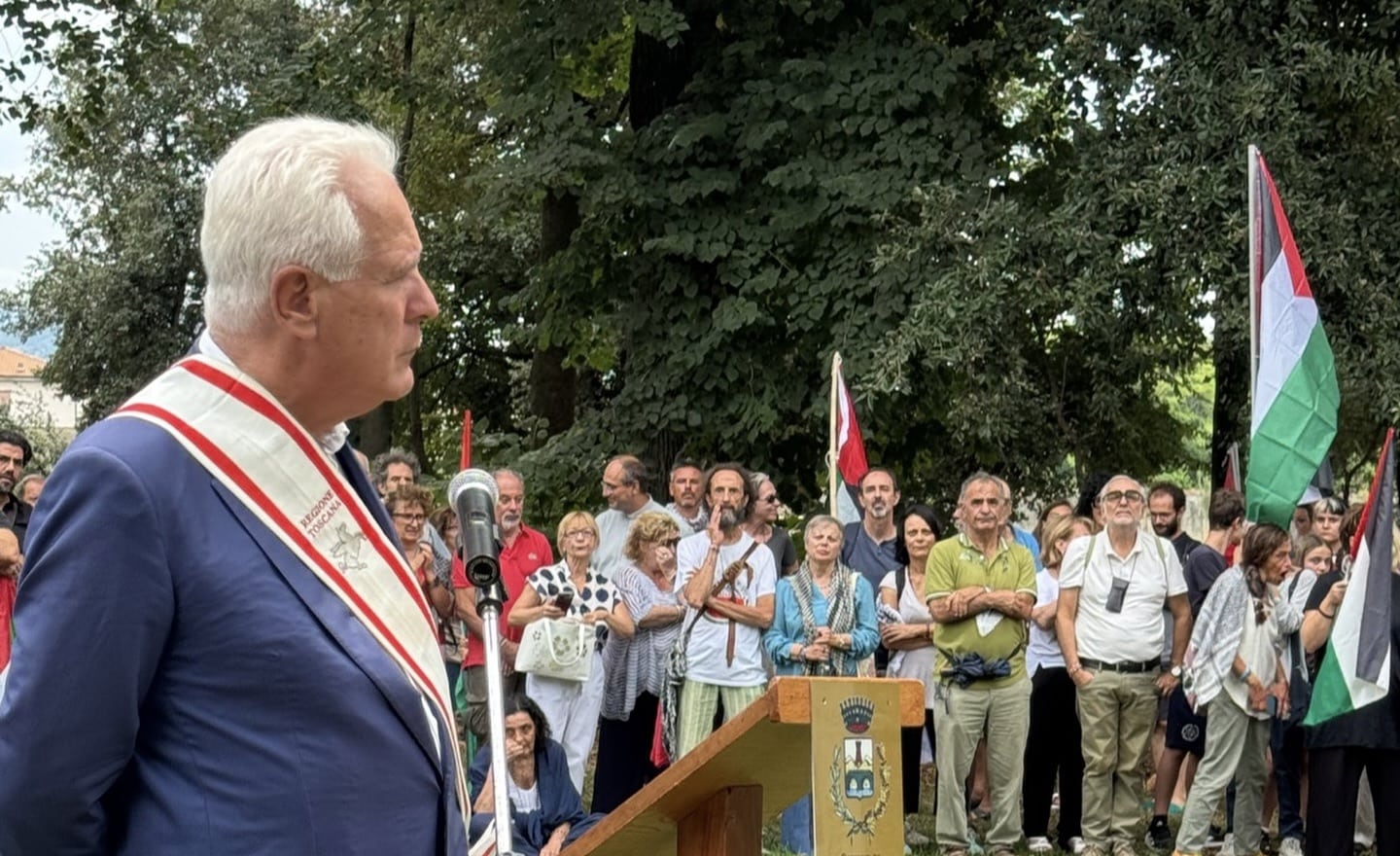 Fra i presenti alla commemorazione anche l’assessora regionale Alessandra Nardini e il presidente della Regione Toscana Eugenio Giani, che ha sottolineato che “il popolo palestinese ha vissuto in questi giorni momenti drammatici con la scomparsa e il funerale di Marah, una ragazza che era arrivata in Toscana per poter avere la possibilità di riprendersi da un grave stato di denutrizione.”