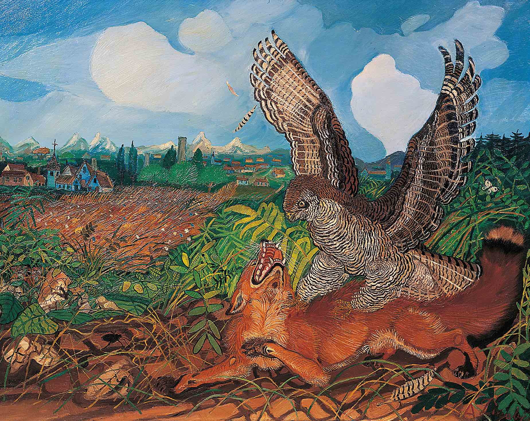 In opere come Tigre con ragno o Lotta di galli, la violenza diventa movimento, ritmo, danza, specchio di un’anima inquieta che nella natura trova il proprio linguaggio più autentico.
