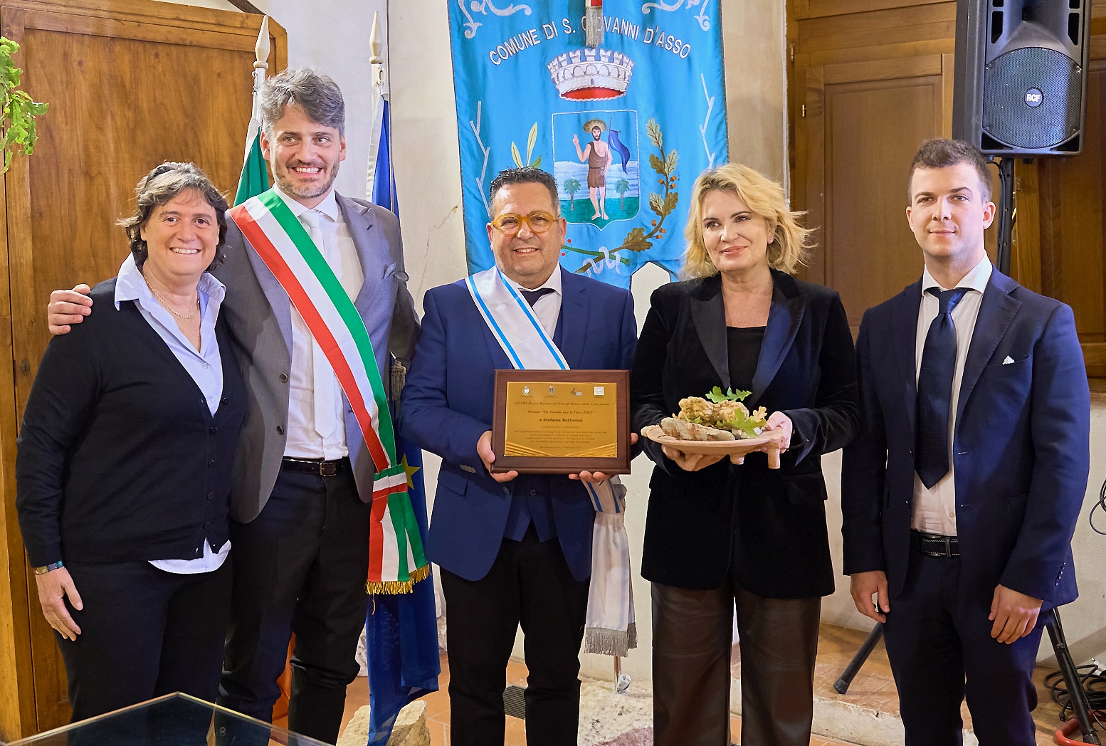Alla cerimonia di consegna – all’interno della mostra mercato del tartufo bianco delle crete senese, a San Giovanni d’Asso – hanno partecipato il sindaco di Montalcino, il senatore Silvio Franceschelli, il vicesindaco Angelo Braconi, il presidente della Municipalità di San Giovanni d’Asso, Angelo Cosseddu, che ha consegnato la targa del premio internazionale e il portavoce dell’Associazione Tartufai Senesi, Filippo Carloni, che ha donato il tartufo trovato nell’ultima ‘cerca’ nelle campagne senesi. Presente anche la vicepresidente della regione Stefania Saccardi.