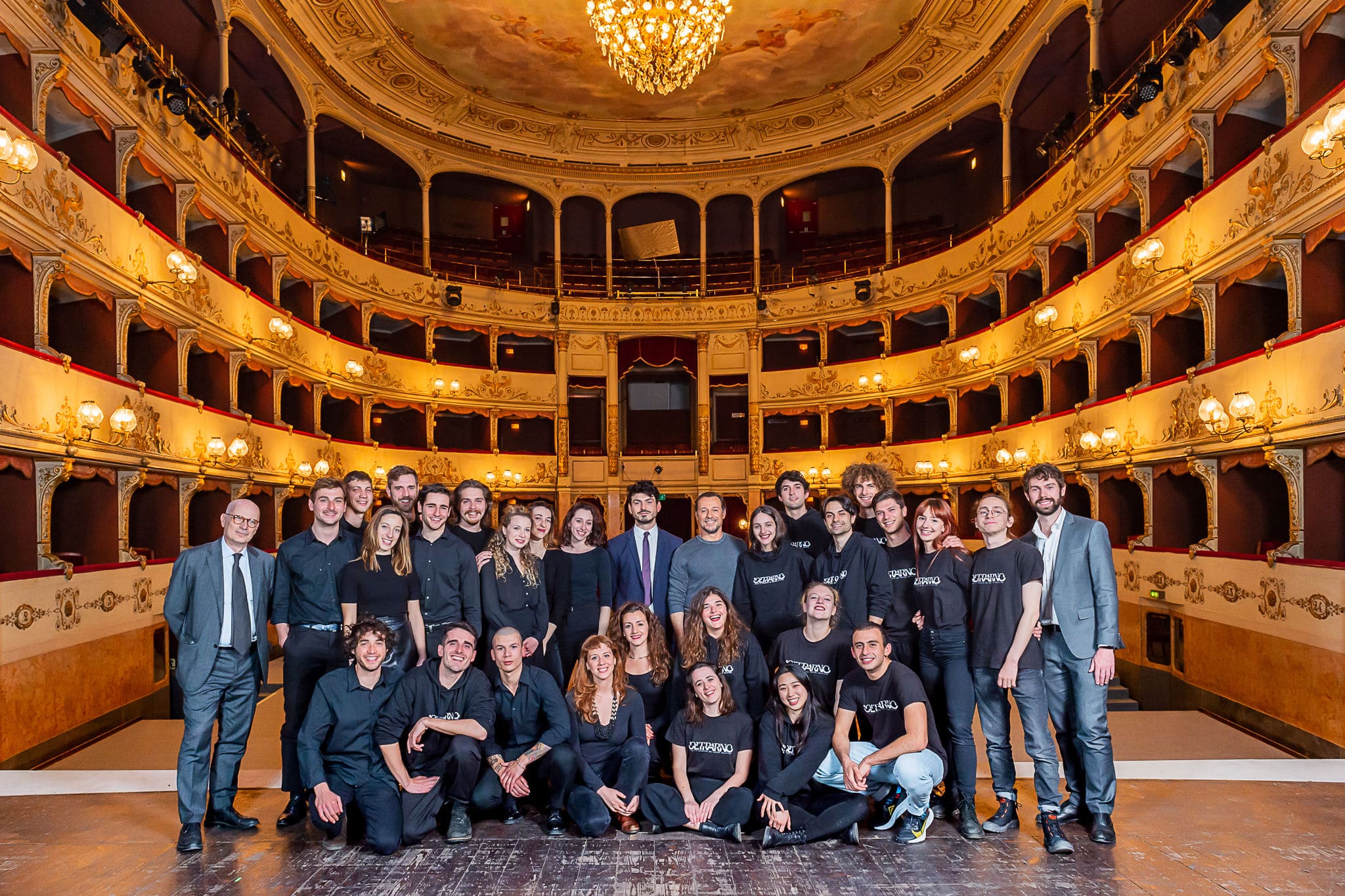Stefano Accorsi, Tommaso Sacchi, Marco Giorgetti con i giovani del Teatro della Toscana_ ph. Filippo Manzini