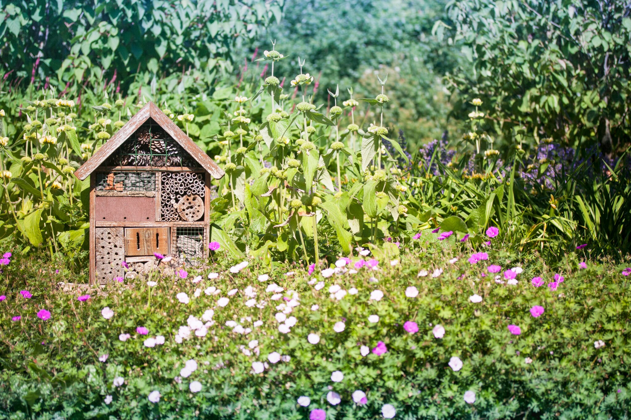 I bee-hotel in legno, pigne e bambù