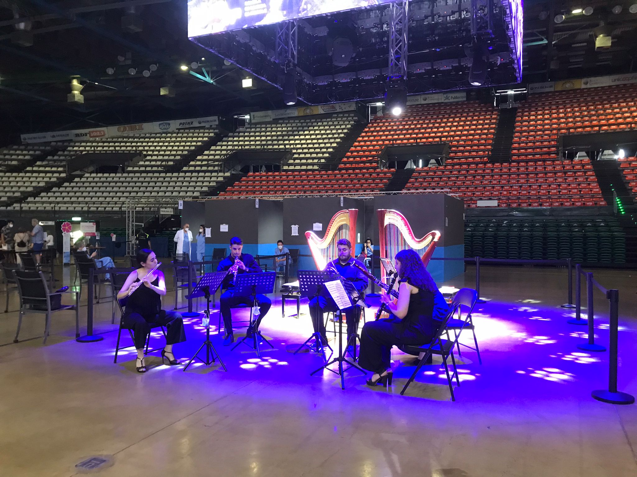 E un segnale forte, in tal senso, è arrivato. Sono infatti oltre 210 mila le somministrazioni di vaccino effettuate dall’inizio della pandemia al Mandela Forum di Firenze, gestito dalla Asl centro. Un traguardo importante che oggi è stato festeggiato con la musica dal vivo di due giovani ensemble di classica. E così in questo 21 giugno, solstizio d’estate, il Mandela Forum per un giorno ha ritrovato la sua vocazione originaria. Qua hanno suonato due ensemble della Scuola di musica di Fiesole: il duo di arpe “Le due Selene”, formato dalle sorelle Nora e Aran Spignoli Soria, con musiche di Albeniz, Paradisi, Krumoholtz, e il quintetto di fiati dell’Orchestra giovanile italiana, con “La Cheminée du Roi René” di Milhaud.