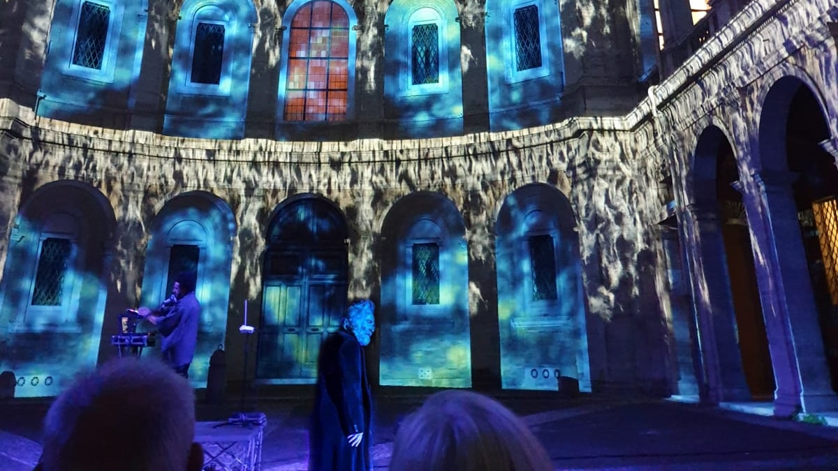 Su queste riflessioni si basa Il diluvio che Giancarlo Cauteruccio dirige, una particolare performance di Teatro-Architettura, già sperimentata con vero successo a Roma l’ottobre scorso.  Il regista nella seconda tappa, quella fiorentina pensata per il chiostro dell’Accademia di belle arti (coperto da portici ad archi ribassati agli inizi del 600) , crea una nuova opera immersiva sul tema dell’acqua, della sua violenza, della sua dirompenza, compresa quella manifestatasi in tempi recentissimi, traendo ispirazione dal testo di Leonardo.
