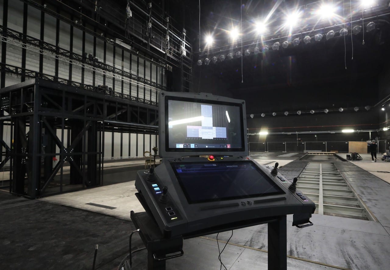 Lo stesso vale per i palcoscenici laterali, dove si trovano da oggi carri mobili delle stesse dimensioni e quantità degli elevatori di palco che potranno spostarsi individualmente oppure a gruppi, portando la scenografia nel palco centrale quando richiesto.