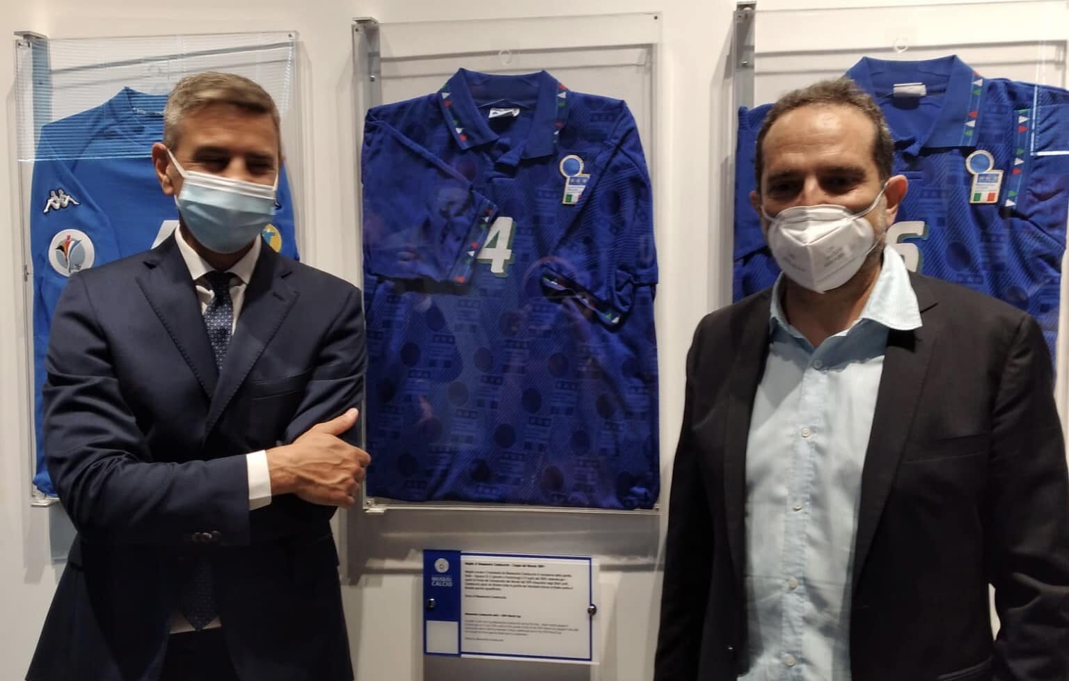 La Nazionale di ieri e di oggi. Costacurta porta la maglia Usa ’94 al Museo di Coverciano, Chiellini dedica la vittoria ad Astori