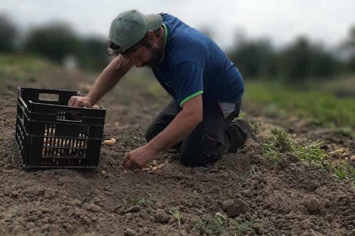 Simone Menichetti impegnato nella raccolta delle patate di montagna dell’azienda Terre Alte di Pietramala