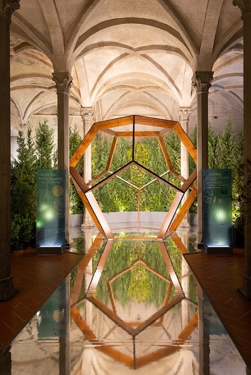 La rassegna, che rientra nelle celebrazioni leonardiane per i 500 anni dalla morte del Genio da Vinci, propone un viaggio tra fogli originali, piante reali e installazioni interattive che diventa occasione di riflessione sull’evoluzione scientifica e sulla sostenibilità ambientale. Il percorso espositivo parte dal chiostro di Santa Maria Novella dove sono posizionati i cinque grandi poliedri regolari disegnati da Leonardo a cui si accompagna una serie di piante selezionate tra quelle studiate o citate dal Genio.