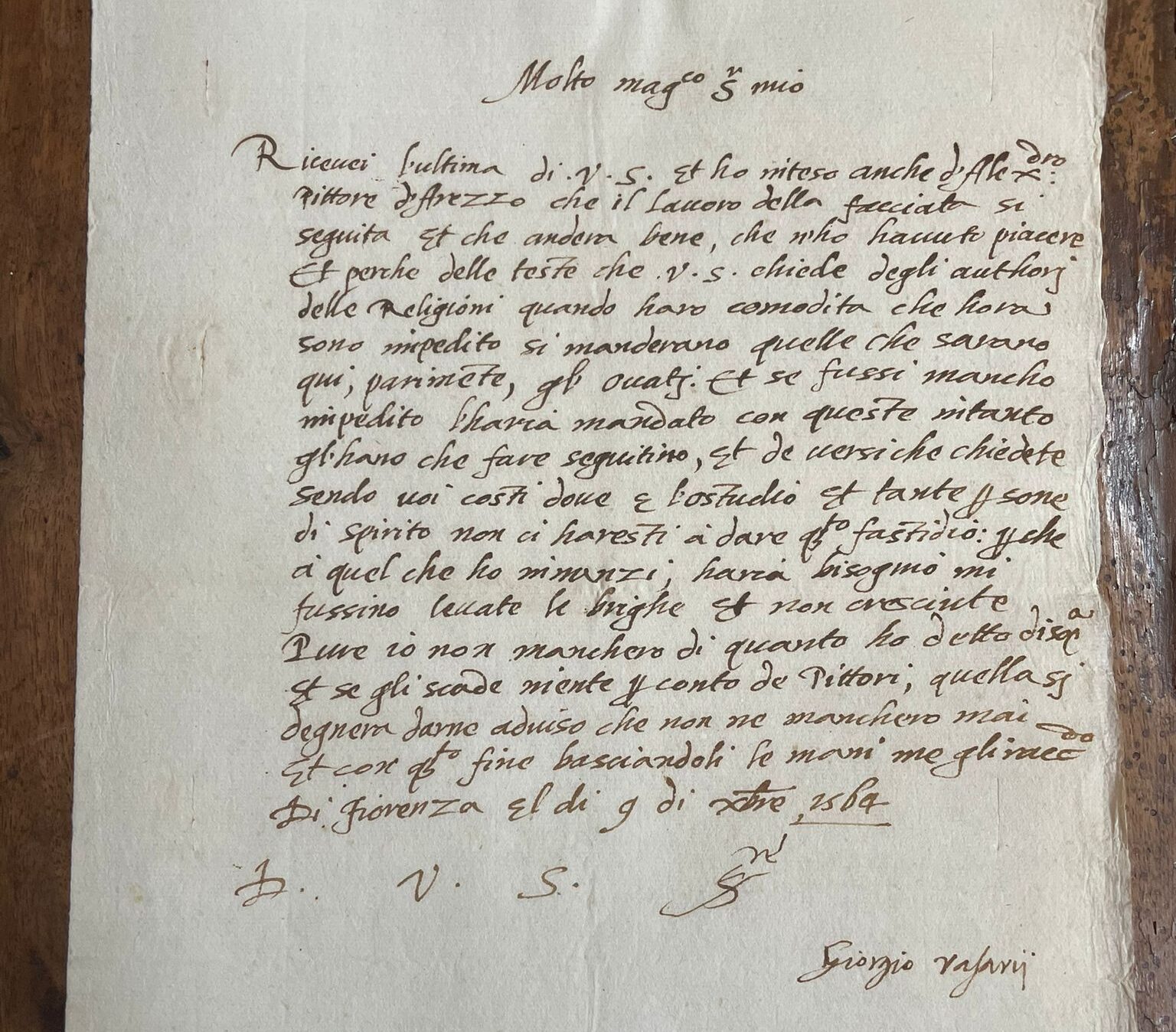 Le lettere di Vasari, 7 missive delle oltre mille che compongono il carteggio, furono scritte da Vasari nel 1564 , che negli anni era diventato l’uomo chiave per l’attuazione della politica culturale di Cosimo I, a Leonardo Marinozzi che era cavaliere di Santo Stefano e Camerlengo di Cosimo I, detto Il Vecchio, che nel 1415 sposò la Contessina de’ Bardi di Vernio futura nonna di Lorenzo il Magnifico. I Bardi rimasero fidi alleati dei Medici e dei discendenti di Cosimo e Lorenzo fino all’inizio del ‘600, e la corrispondenza della famiglia confluì nell’[/mark]Archivio della Compagnia di San Niccolò di Bari e scoperte nel 1997 da Alessandro Magini presidente dell’Accademia Bardi, che su di esse ha poi pubblicato uno studio [/mark]