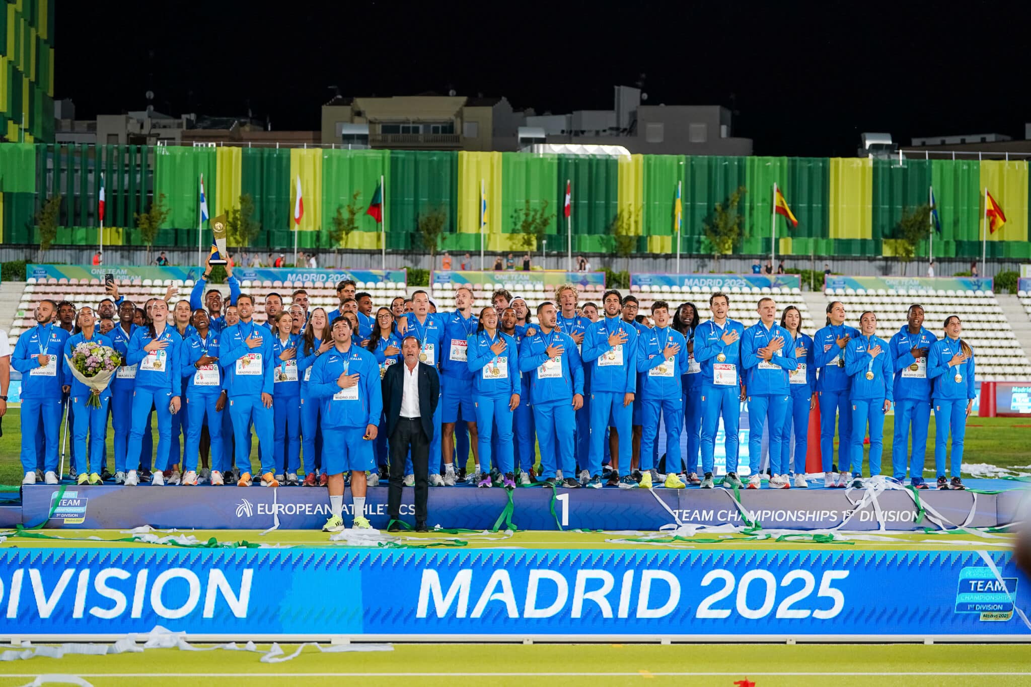 La festa sugli spalti di Madrid, con l’inno di Mameli cantato a squarciagola e il presidente federale Stefano Mei issato sulle spalle degli atleti, racconta molto più di una vittoria. Racconta una squadra che si riconosce nei suoi campioni, nella sua storia, nel suo presente.