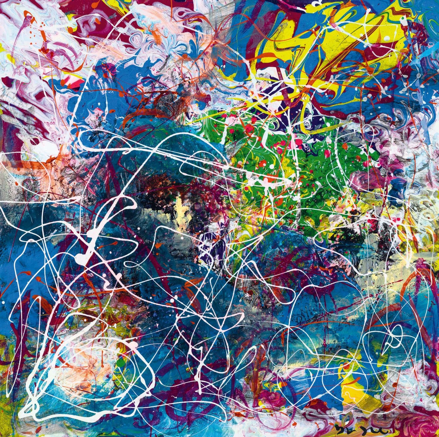 Quella di Liu Youju è una pittura gestuale che deriva anche dal confronto con le esperienze artistiche occidentali. Colori come vibrazioni musicali che traducono la complessità della materia, la timbricità, la materialità, il vitalismo, in un inseguimento continuo, una perenne mutazione e trasformazione di cui Liu Youju cerca di afferrare l’essenza attraverso i segni-scrittura e i segni-colore.