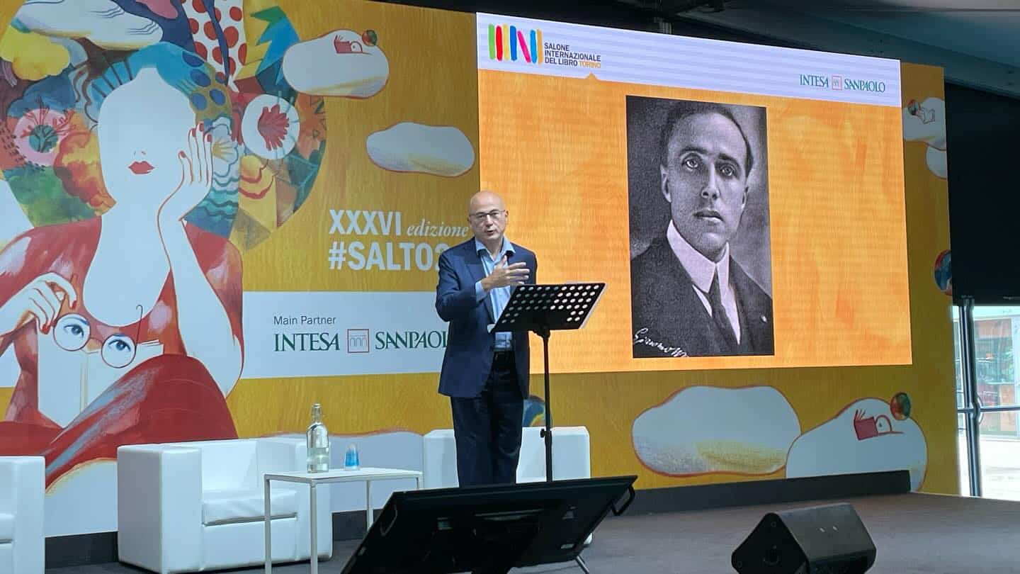 Lo scrittore Aldo Cazzullo ricorda Giacomo Matteotti nello stand della Toscana al Salone del Libro