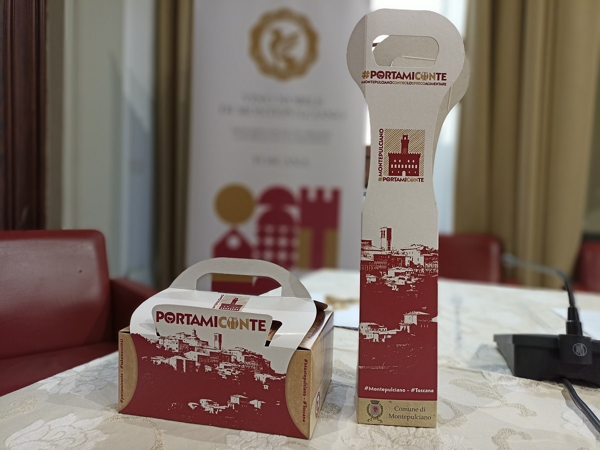 Contenitori per portare via il cibo e il vino avanzati dal pasto al ristorante, distribuiti dal Comune di Montepulciano in collaborazione con il Consorzio del Vino Nobile, contro lo spreco alimentare. Si chiama #portamiconte ed è valso il primo premio di eccellenza nazionale ”Verso un’economia circolare” alla Fondazione Cogeme Ets.
