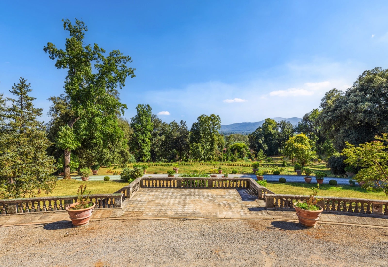 La villa principale è di circa 2.500 metri quadrati e si sviluppa su tre piani. C’è anche una dépendance di circa 300 metri quadrati. Circonda la residenza un parci di tre ettari, altrettanti di uliveto e prati. Il giardino storico presenta vialetti, statue in terracotta, fontane, siepi di bosso e vegetazione centenaria.