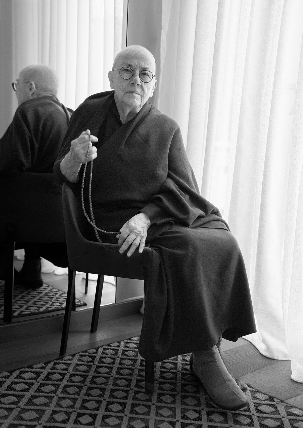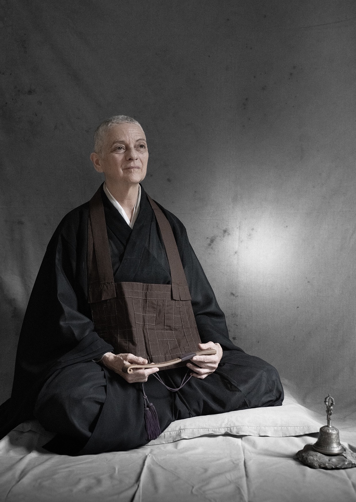 L’idea è nata guardando un Buddha femminile della compassione che si declina in vari nomi, nelle varie religioni, Kannon in Giappone, Guanyin in Cina. Guardando questa immagine ho pensato che le donne nella storia, anche in ambito spirituale, sono state spesso messe da parte o gli è stato reso difficile lavorare. Ci sono tradizioni religiose in cui i ruoli apicali sono anche oggi sempre maschili, sia nello zen giapponese che nella religione cattolica. Anche nel Buddismo si diceva che la donna non potesse diventare Buddha o illuminata a meno che non rinascesse uomo. Così ho deciso che volevo essere io a rappresentarle, volevo rappresentare donne di oggi come statue o icone. Infatti nelle mie foto sono tutte a figura intera proprio nell’intento di “statuizzarle”.