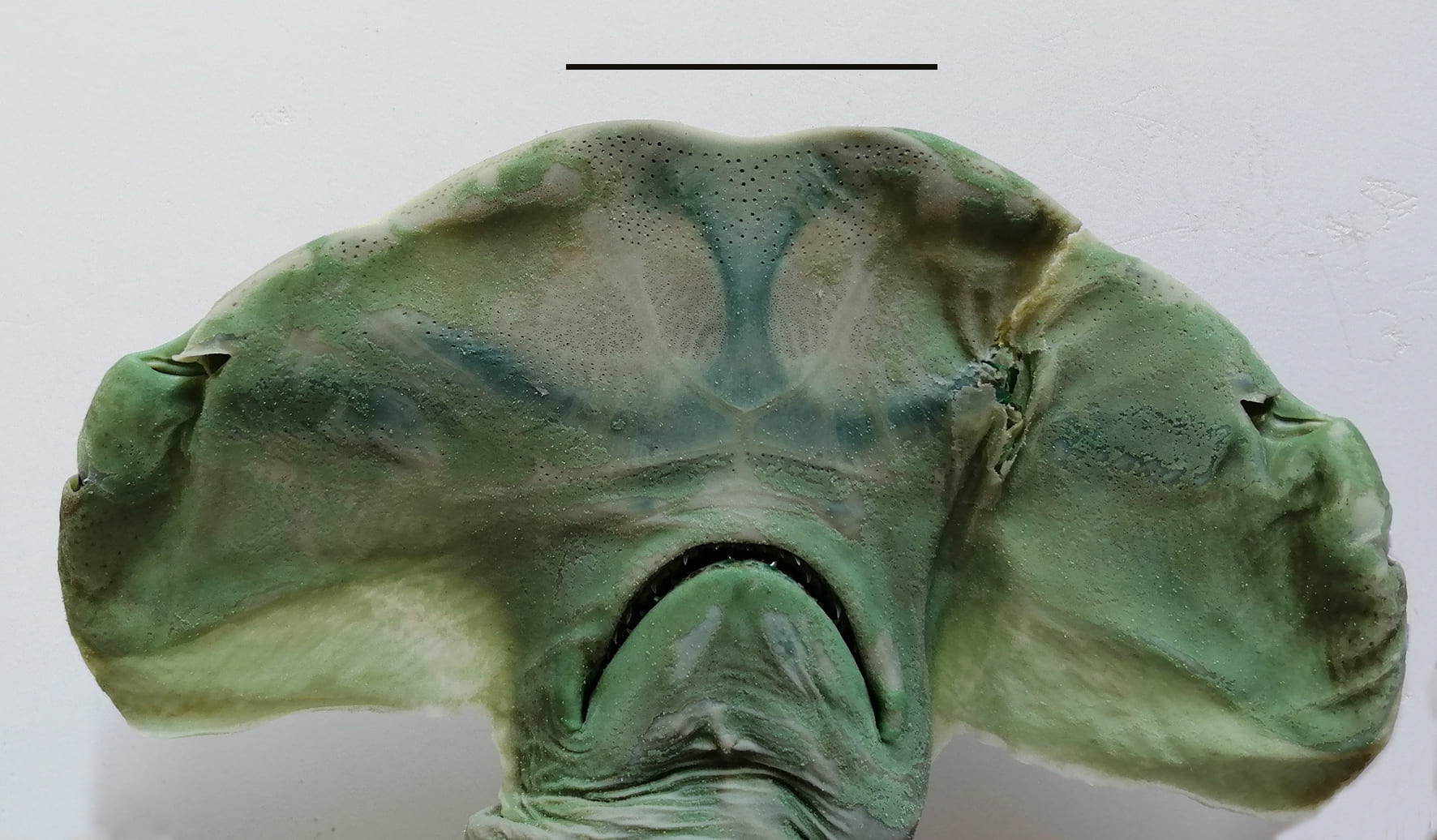 Per quasi un secolo scienziati ed esperti si sono interrogati su quale fosse la specie dell’esemplare, adesso non ci sono più dubbi: si tratta di uno squalo martello dagli occhi piccoli, nome scientifico Sphyrna tudes.