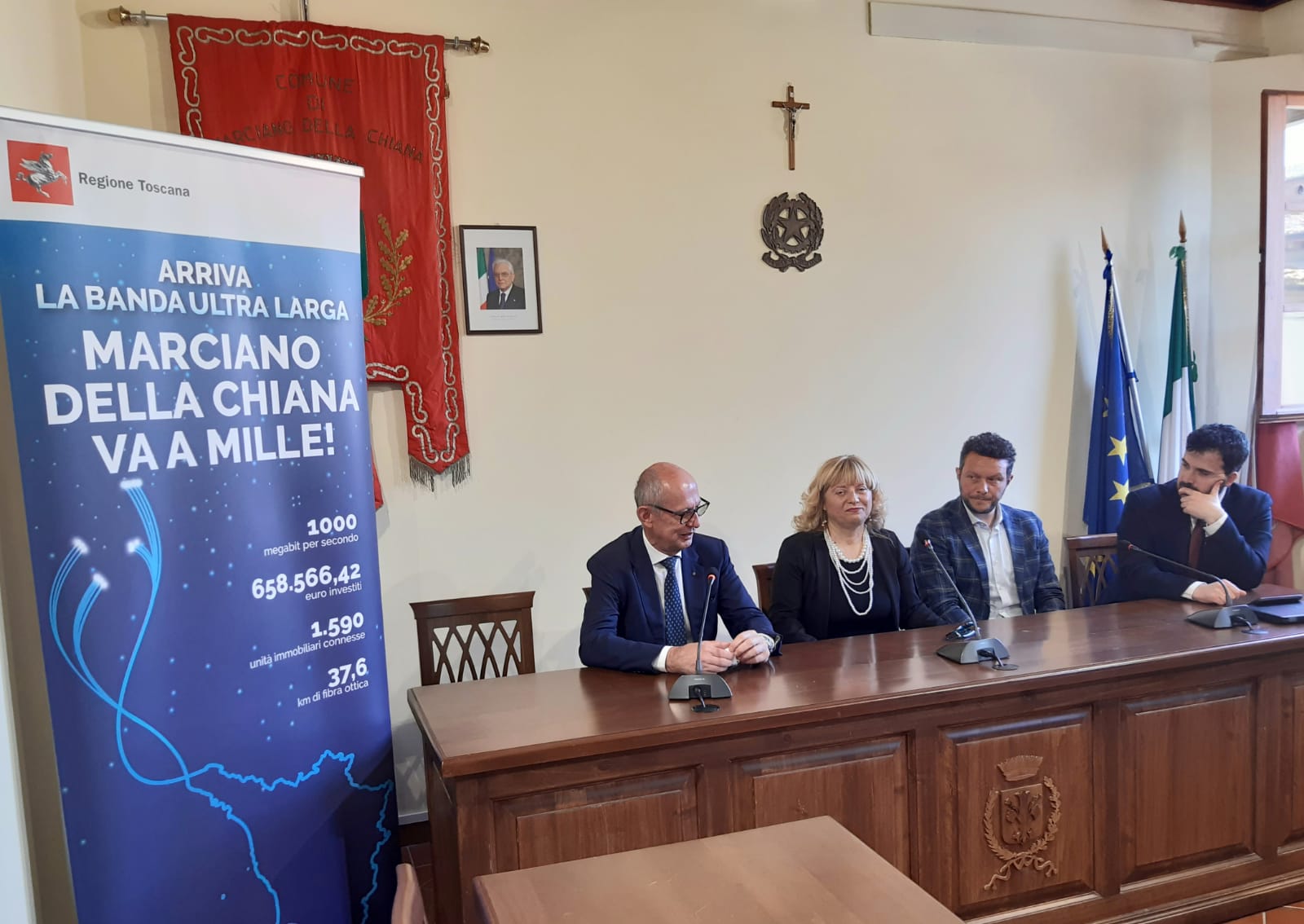 Il progetto, illustrato dall’assessore regionale alle infrastrutture digitali, Stefano Ciuoffo, dalla sindaca di Marciano della Chiana, Maria De Palma e dai rappresentanti di Open Fiber, ha visto la realizzazione di una nuova rete che ha connesso 1665 unità immobiliari con tecnologia FTTH (la fibra fino a casa) e 212 con tecnologia FWA (Fixed Wireless Access).