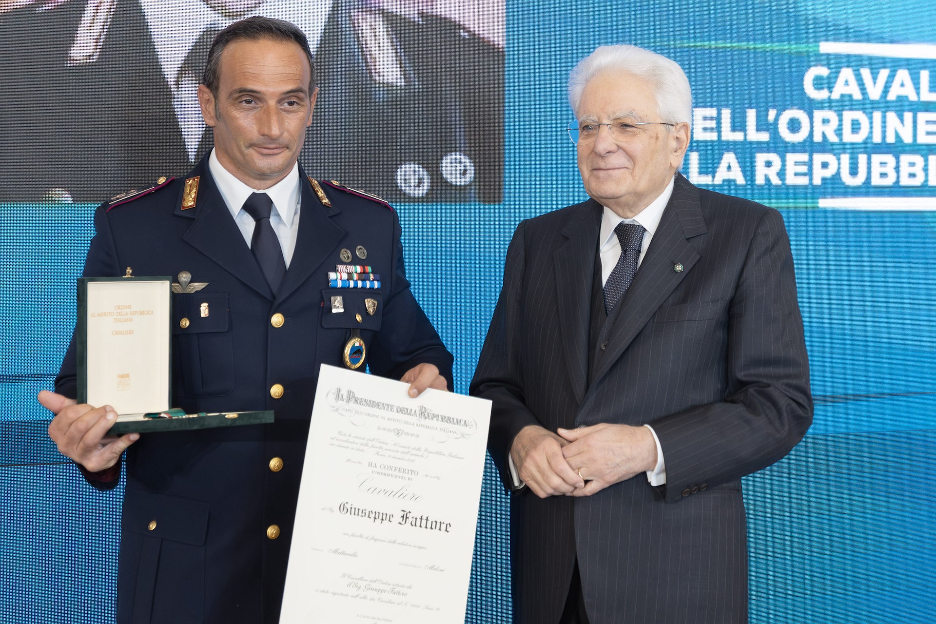 Giuseppe Fattore, 44 anni, è stato nominato Cavaliere dell’Ordine al merito della Repubblica italiana “per il coraggio dimostrato nel prestare soccorso, andando oltre il proprio dovere”.
