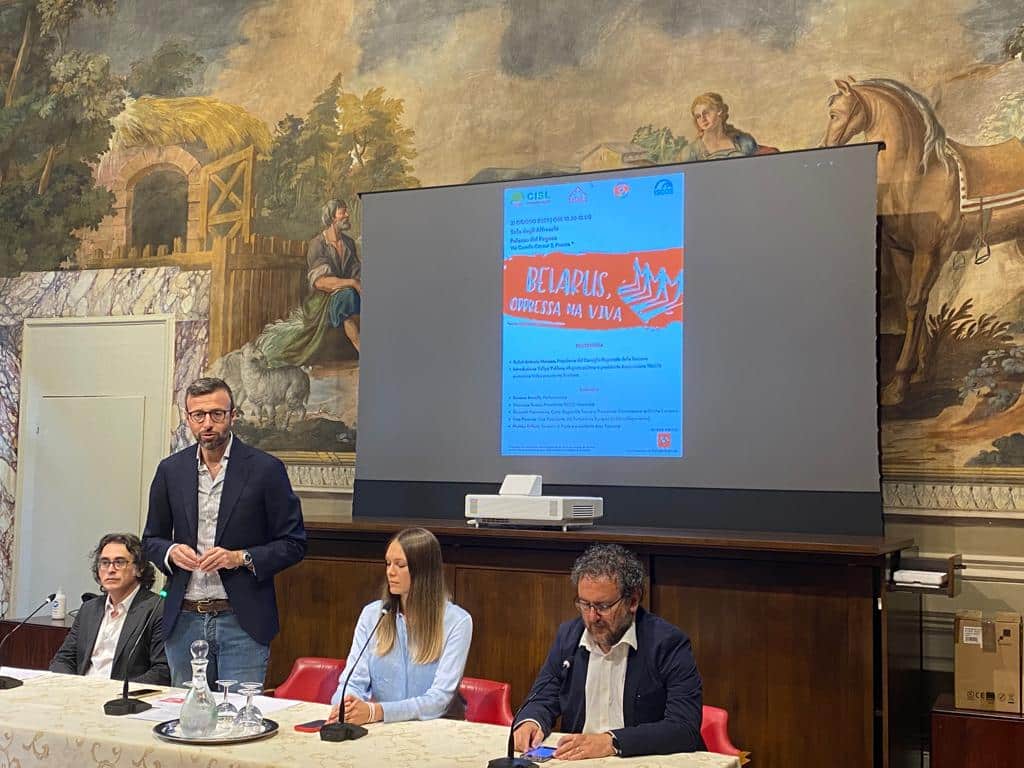 “La Bielorussia è parte dell’Europa. Quello che sta accadendo, soprattutto dopo le elezioni del 2020, è drammatico e non possiamo voltarci dall’altra parte. Noi vogliamo costruire un Europa più forte, che sappia allargarsi e dare a tutti più diritti, più opportunità”. Così il presidente del Consiglio regionale Antonio Mazzeo aprendo il convegno “Belarus, oppressa ma viva’, che si è tenuto a palazzo del Pegaso, dove sono intervenuti Yuliya Yukhno, rifugiata politica, Francesco Gazzetti, presidente commissione Europa del Consiglio regionale, la parlamentare Simona Bonafè, il presidente nazionale Istituto sindacale per la cooperazione allo sviluppo (Iscos) Vincenzo Russo e il sindaco di Prato e presidente Anci Toscana Matteo Biffoni.