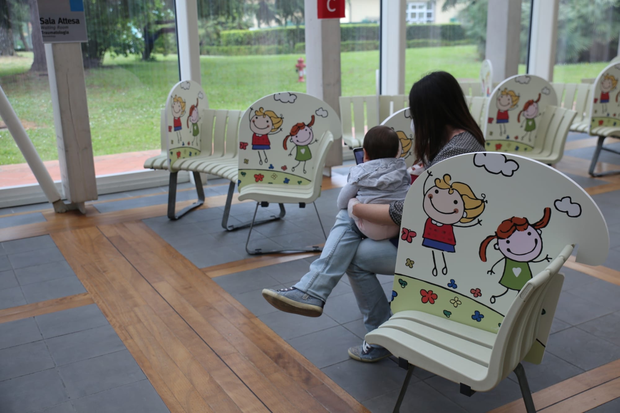 In questa nuova situazione le sale di attesa sono un sorvegliato speciale, si tratta infatti dei luoghi dove è maggiore il rischio di affollamento: per questo è opportuno distanziare gli orari delle visite, rispettare scrupolosamente gli orari indicati e limitare gli accessi ad un solo accompagnatore per bambino. Per facilitare e rendere anche più gradito il distanziamento sociale, nelle sedute delle sale di attesa sono stati collocati dei pannelli colorati che delimitano lo spazio dedicato ad ogni coppia bambino-accompagnatore. Uno dei tanti modi per fronteggiare con un tocco di allegria la nuova realtà con cui anche i bambini stanno imparando a convivere.