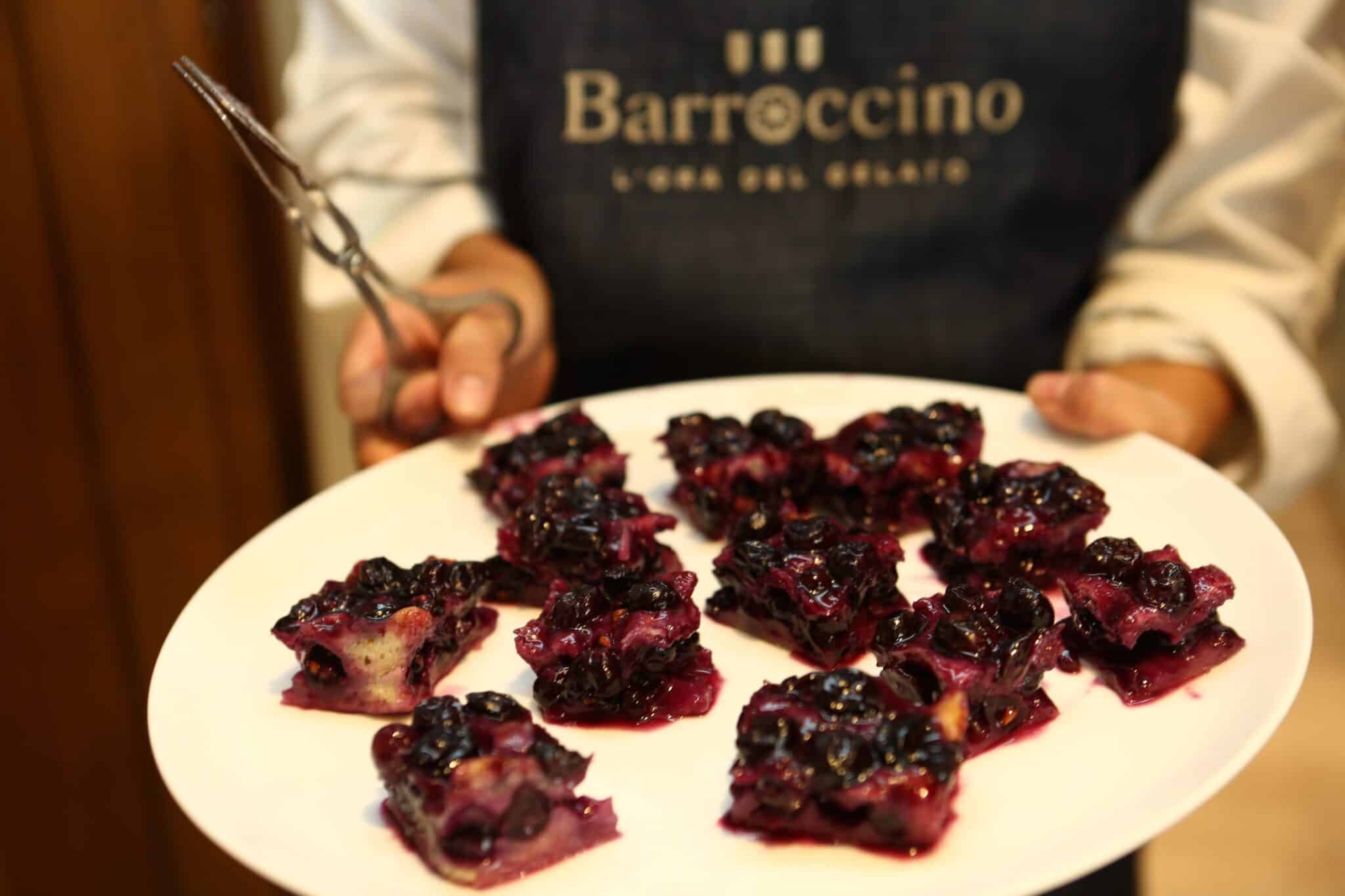 “Innanzitutto ho usato un’uva nera molto profumata che valorizzasse anche l’aspetto olfattivo – racconta Cristina Sidonia Nita, pastry chef vincitrice – poi ho utilizzato un olio extravergine d’oliva di alta qualità per l’impasto, dove ho mescolato all’interno anche l’uva”.