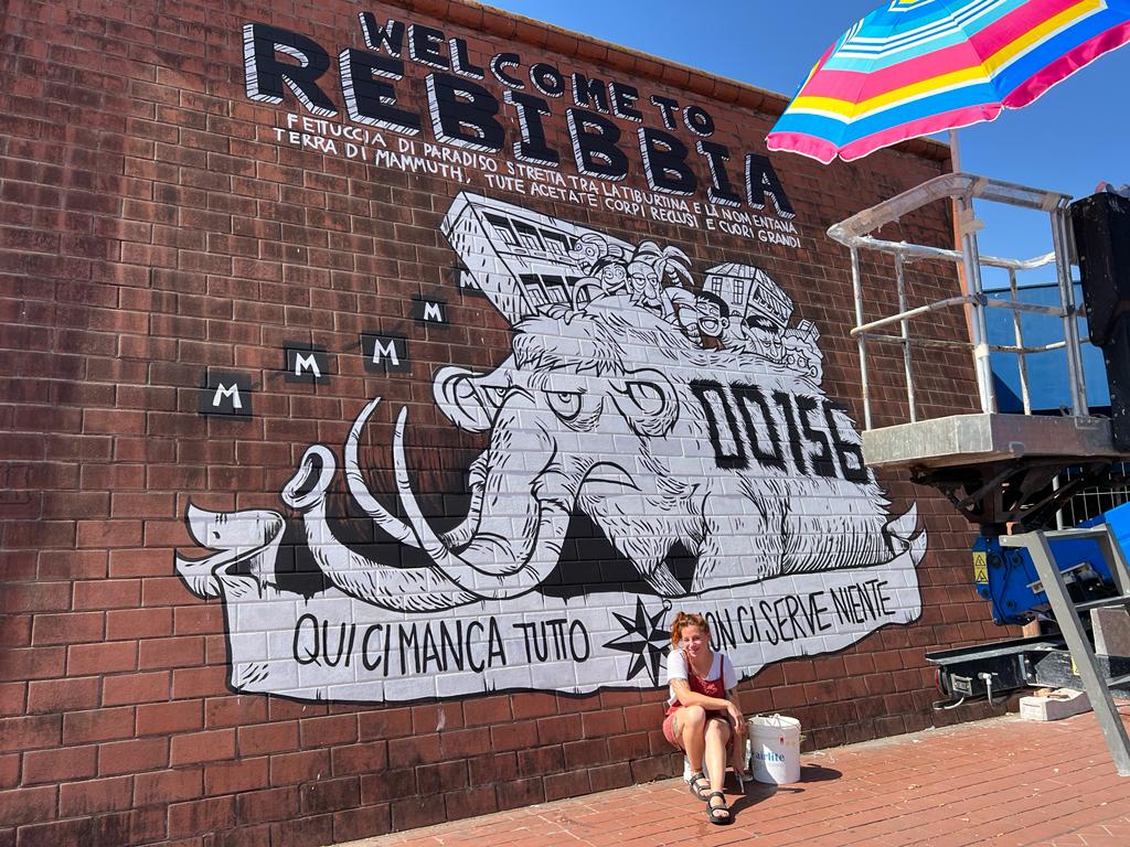 Da Carrara a Roma per restaurare il murales di Zerocalcare a Rebibbia, “per fare in modo che l’opera possa continuare a portare un messaggio di unione per la comunità di Rebibbia”,così Maria Bressan, in arte Rosmunda, street artisti della città toscana del marmo che ha restaurato in modo “green” lo storico Mammuth murale di 60 metri quadrati che il fumettista realizzò nel 2014 nei pressi dell’uscita della metropolitana del quartiere dove risiede il fumettista romano. Il mammut, che ritorna spesso nei fumetti di ZeroCalcare, rimanda ad alcuni ritrovamenti di animali preistorici intorno agli anni Ottanta nella zona di Casal de’ Pazzi, tra via Tiburtina e via Nomentana, ovvero le due vie che “stringono” Rebibbia una “fettuccia di paradiso, terra di mammuth, tute acetate, corpi reclusi e cuori grandi“.