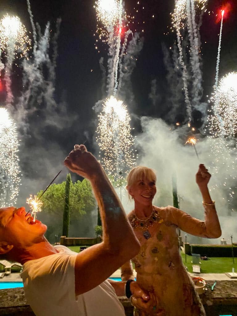I fuochi d’artificio a illuminare a giorno la tenuta de Il Palagio hanno salutato i festeggiamenti per i 30 anni del matrimonio tra Sting e Trudie Styler. Il cantante e l’attrice e produttrice hanno festeggiato con un grande party nel complesso acquistato nei pressi di Figline Valdarno ormai nel lontano 1999. Da oltre vent’anni trascorrono gran parte dell’anno qui in Toscana.