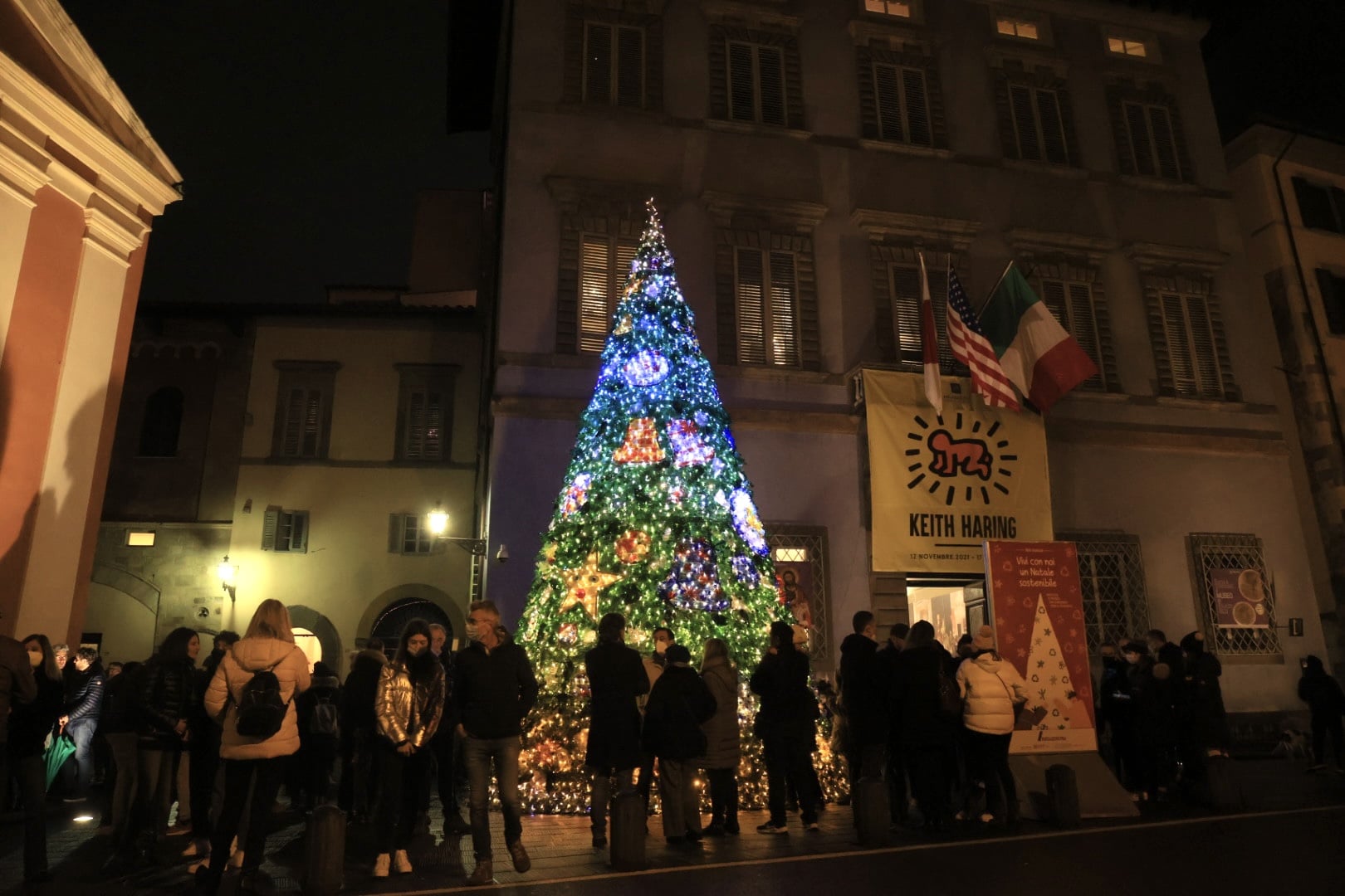 Natale: acceso a Pisa il maxi albero realizzato in plastica riciclata