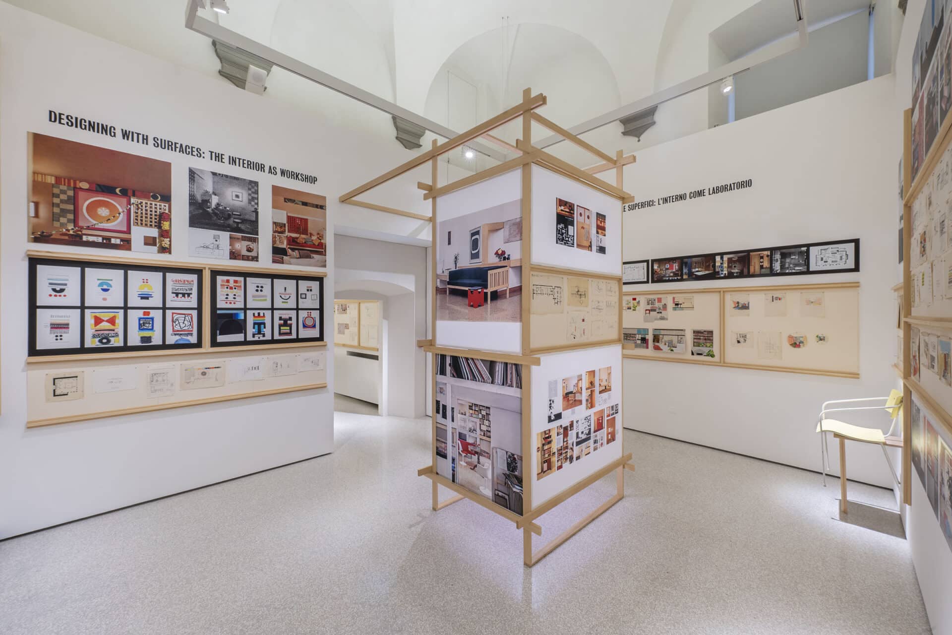 Alcune sezioni sono dedicate al suo lavoro come decoratore d’interni e architetto nel dopoguerra, oltre che alla collaborazione con Poltronova, per la quale realizza mobili ironici e innovativi, come i Mobili Fly e i visionari Superbox, capaci di mettere in discussione la normalità dell’arredo domestico.