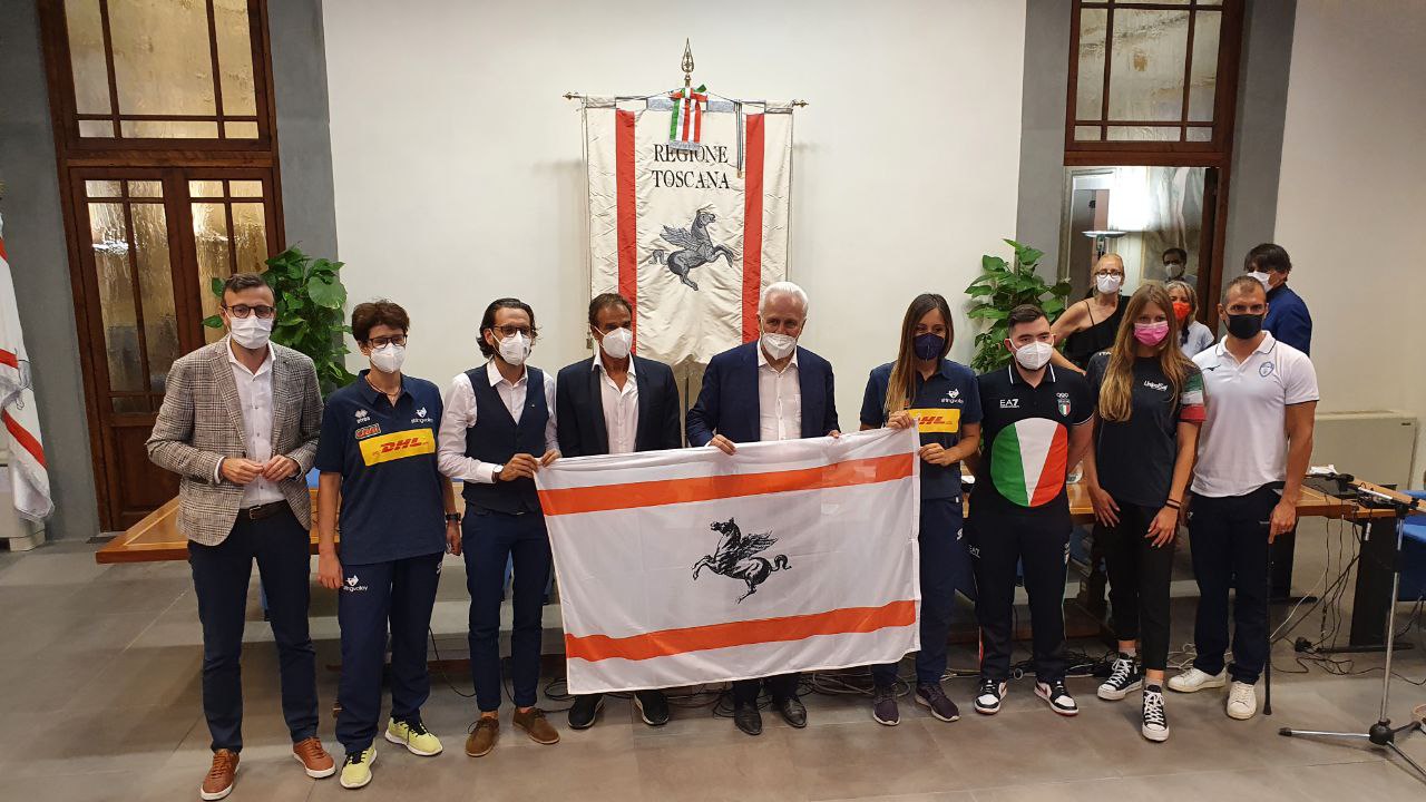 Trenta atleti toscani a Tokyo, alle Olimpiadi 2020 che si giocano però nel 2021. Un’altra beffa della pandemia, che però poco toglie al prestigio dell’appuntamento più atteso dal mondo dello sport. Ieri il presidente della Regione Eugenio Giani ha voluto incontrare la delegazione a Palazzo Sacrati Strozzi a Firenze per un saluto, ma soprattutto per regalare agli atleti la bandiera della Toscana. Con lui c’erano anche il presidente del Consiglio regionale della Toscana, Antonio Mazzeo, il presidente del Coni Toscana, Simone Cardullo, e il presidente del Comitato paralimpico regionale, Massimo Porciani. “Qualora qualche nostro atleta dovesse vincere una medaglia, sarebbe bello veder sventolare anche la bandiera biancorossa assieme al tricolore italiano”, ha detto Giani.