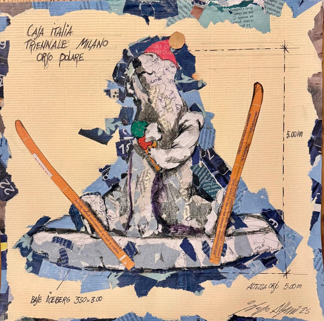 Mancano pochi mesi alle Olimpiadi Invernali Milano-Cortina e ad accogliere atleti, giornalisti e visitatori al palazzo di Triennale, sede di Casa Italia per tutta la durata dei Giochi, ci sarà un gigantesco orso polare appena caduto dagli sci, e che, nonostante la scivolata, sorride gustandosi un cono gelato con indosso un cappello di lana con pon pon. Un orso polare in cartapesta.