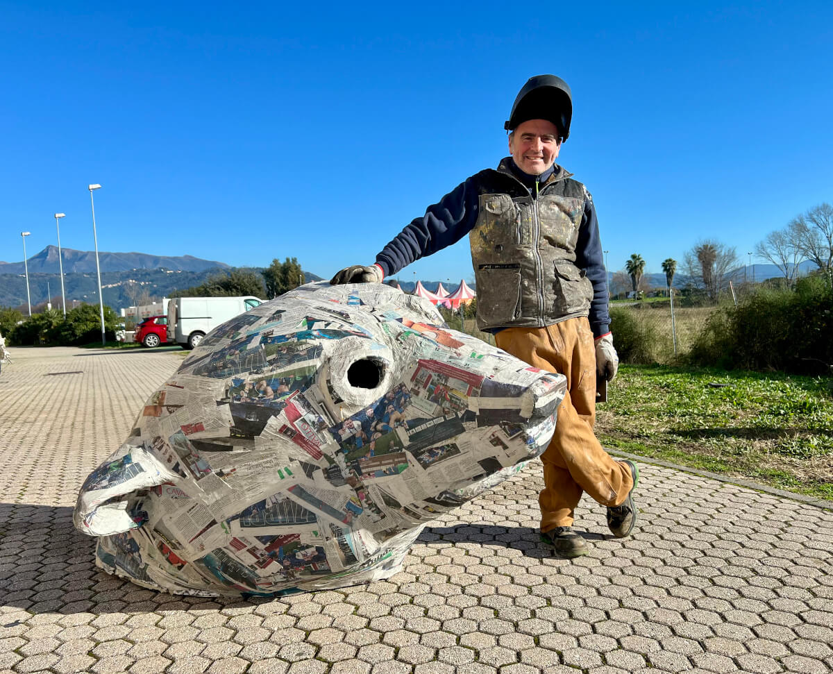 Per il carrista viareggino, secondo classificato nell’edizione 2025 del Carnevale, dopo aver vinto con i suoi carri di prima categoria per tre anni di fila, non è la prima volta che si trova ad esporre le sue opere davanti Triennale: una giraffa, un ippopotamo, un elefante, tutte specie in estinzione. Anche l’orso polare lo è.