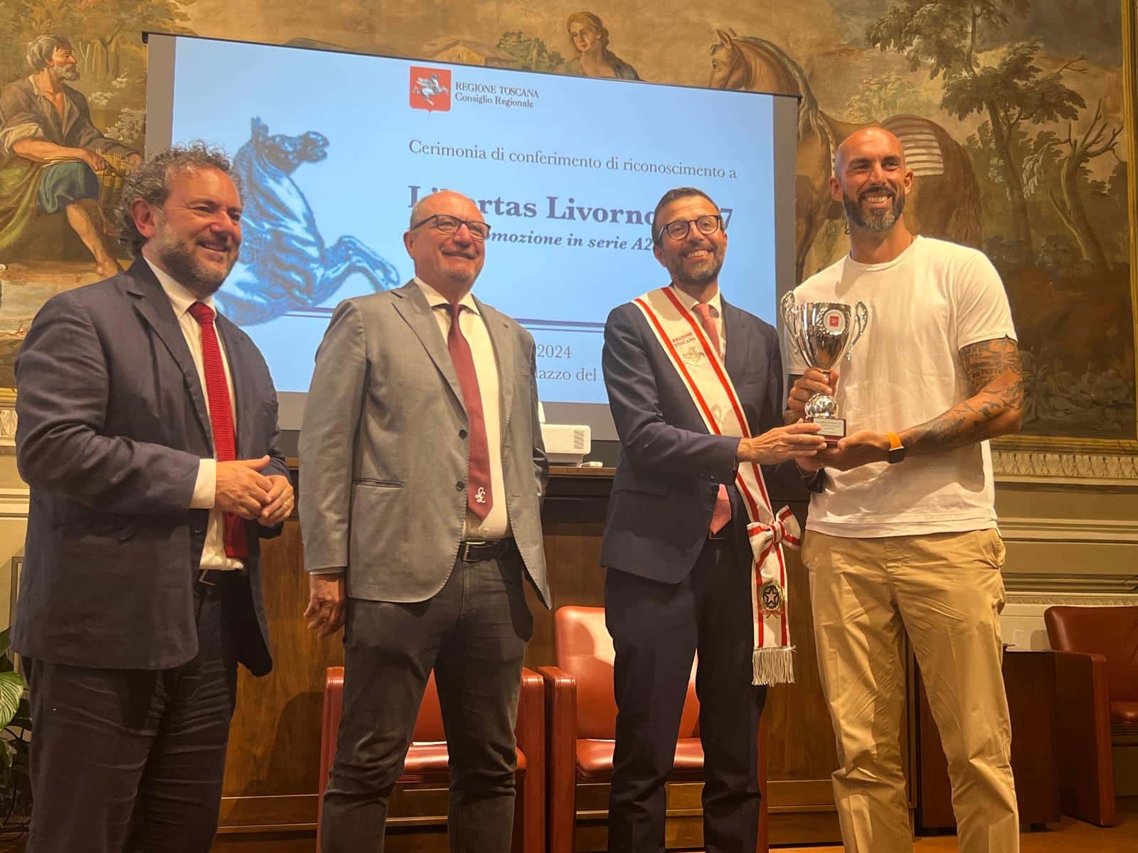 Per il presidente dell’Assemblea legislativa Antonio Mazzeo “si tratta di un riconoscimento importante per la Libertas Livorno 1947 che dopo 33 anni torna in A2. Un riconoscimento per la società, per gli atleti, che hanno fatto un campionato stupendo, ma anche per il pubblico che ha sempre gremito il palazzetto dello sport. Il percorso che ha fatto questa squadra è la dimostrazione che il lavoro paga, che permette di affrontare e superare le difficoltà e di raggiungere gli obiettivi”.