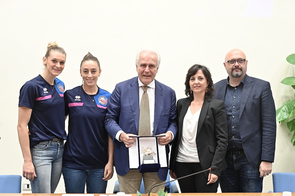Pegaso d’Oro alla Savino Del Bene Volley di Scandicci. Questa mattina il presidente della Toscana, Eugenio Giani, ha conferito la massima onorificenza della Regione al club di pallavolo femminile, impegnato quest’anno in Champions League.