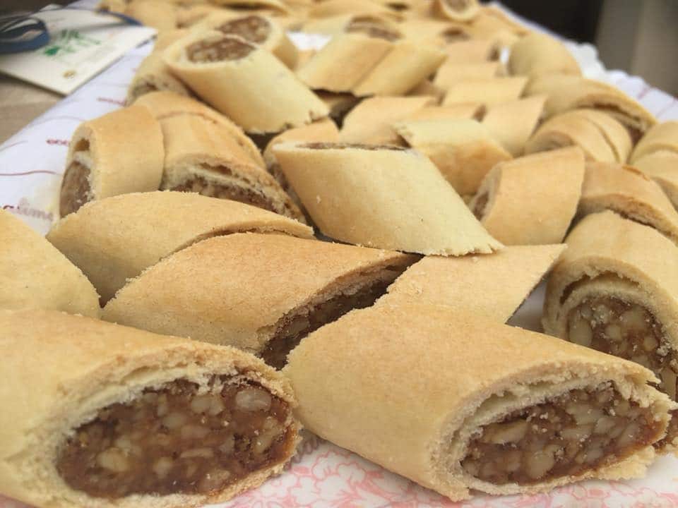 Per questo lo Sfratto è un biscotto lungo proprio a forma di bastone, che viene preparato con la pastafrolla e dentro nasconde un ricco e profumato ripieno a base di noci, miele e noce moscata.