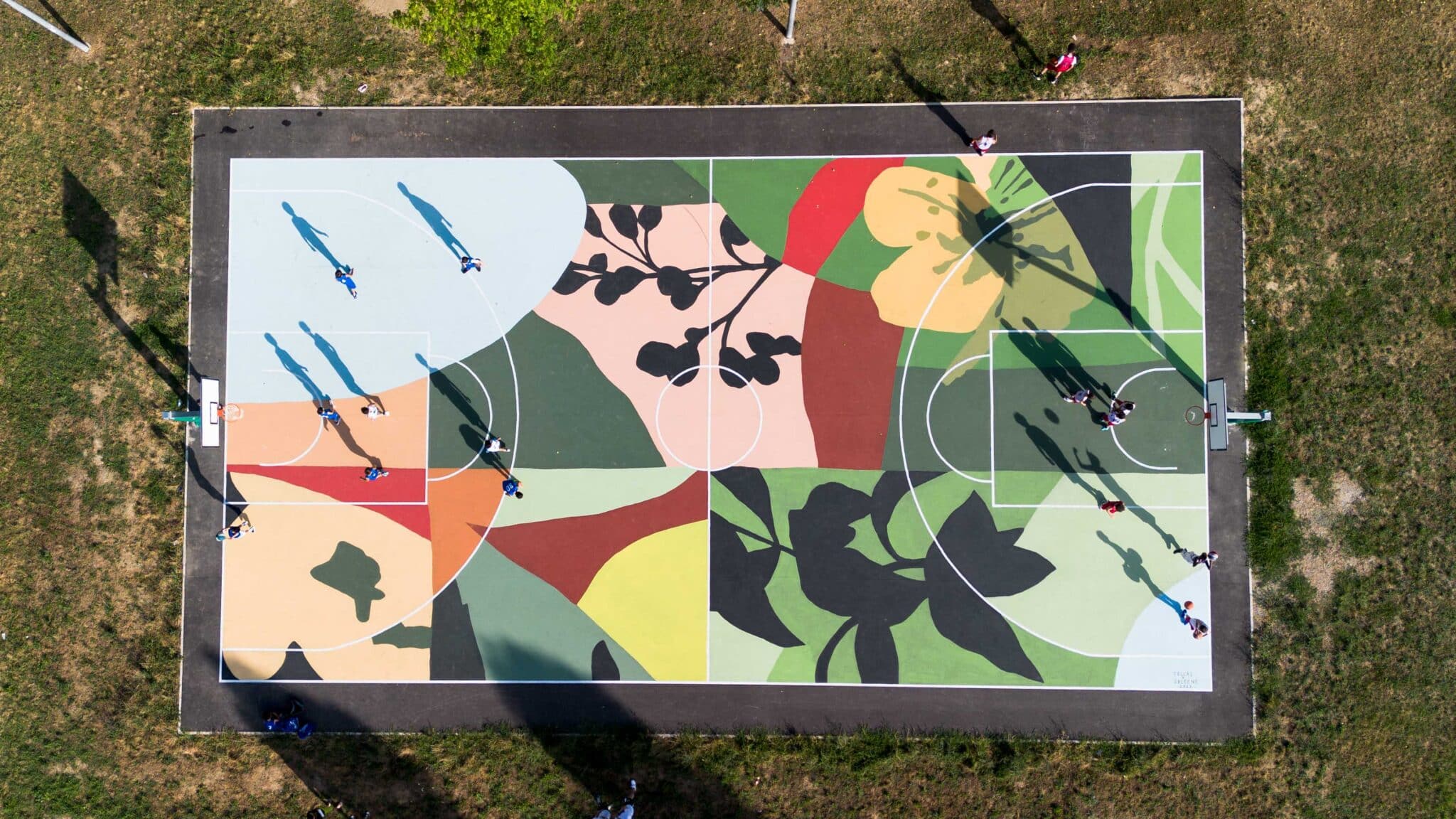 “Still life” è il titolo di quest’opera realizzata dagli artisti di urban art Tellas e 2Bleene, cagliaritano lui, portoricana lei. Il murales a terra occupa quasi per intero il playground, che misura 15×25 metri, che è stato inaugurato nel 2022 e realizzato dall’allora giunta comunale a conclusione di un percorso partecipativo realizzato con la cittadinanza chiamato “La città colorata” realizzato con la compartecipazione finanziaria della Regione Toscana.