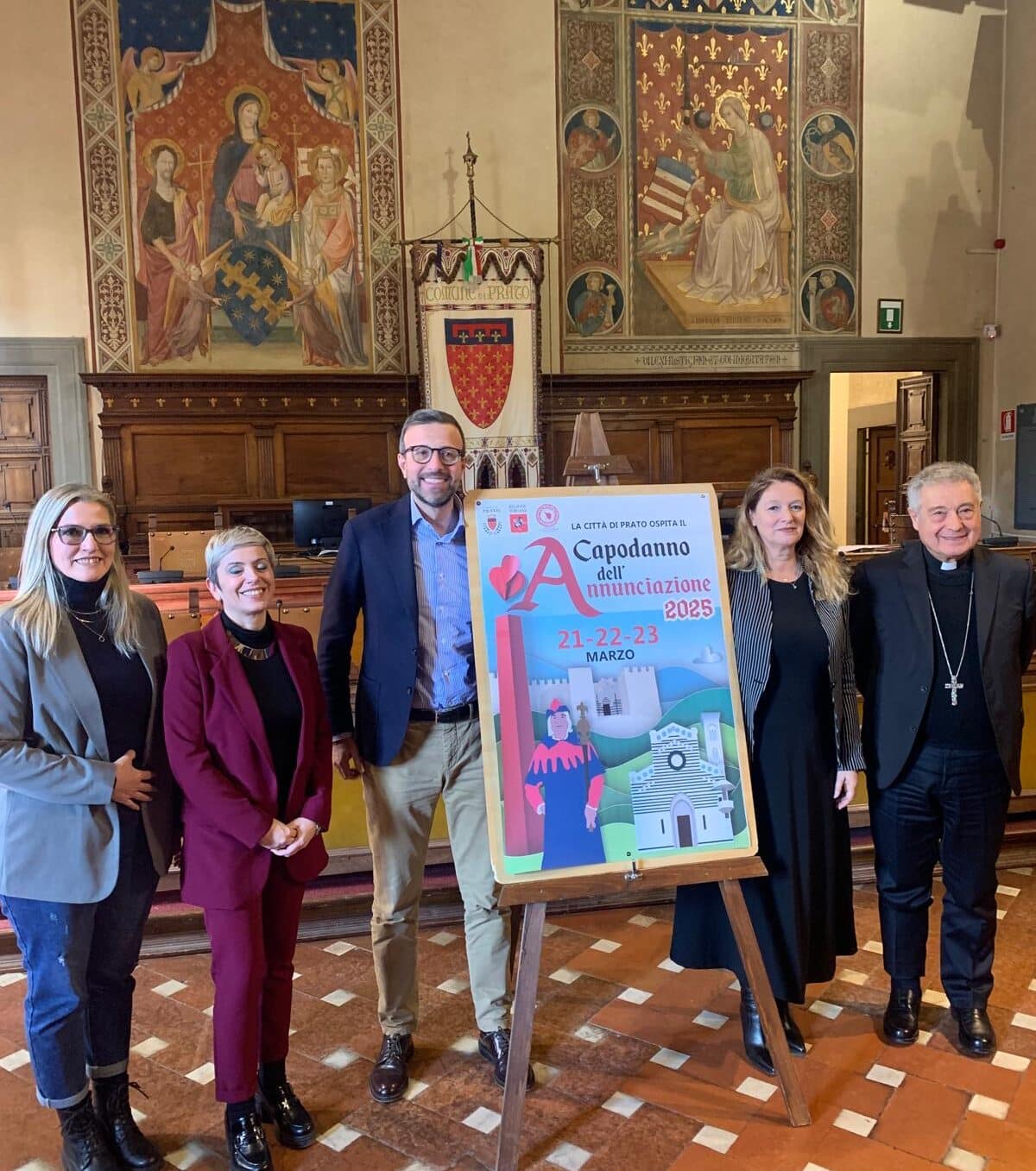 Il Capodanno dell’Annunciazione 2025 si svolgerà il 21, 22 e 23  marzo con la partecipazione di oltre 70 gruppi storici e 1700 figuranti provenienti da tutta la Toscana, spettacoli, concerti, mostre e anche l’Ostensione straordinaria della Sacra Cintola della Madonna. Il capoluogo tessile raccoglie il testimonial da Massa Marittima, che l’anno scorso ha ospitato l’evento, che nel 2022 e nel 2023 si è tenuto a Firenze ed Arezzo, in base al principio di rotazione delle città ospitanti stabilito dal presidente della Regione Eugenio Giani.