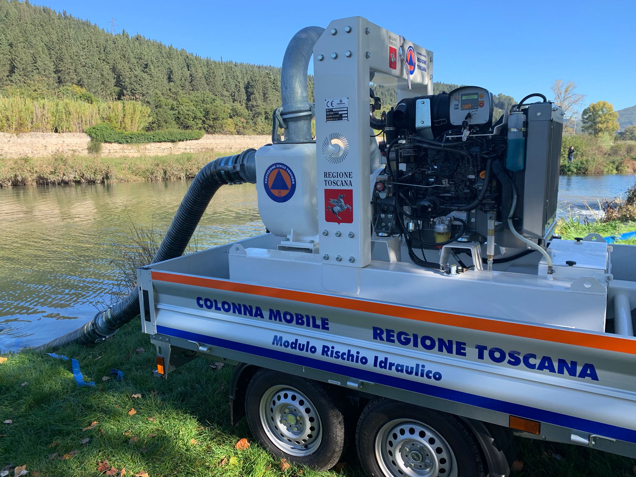 Nella mattinata di lunedì 7 novembre si è svolto a Calenzano, lungo il fiume Marina, una prova sul campo per le quattro nuove idrovore della Direzione Difesa del suolo e Protezione civile della Regione Toscana. L’obiettivo di questa esercitazione era quello di verificare il corretto funzionamento di queste 4 idrovore che sono state acquistate nell’ambito del progetto di potenziamento della Colonna mobile finanziato dal Dipartimento della Protezione civile.