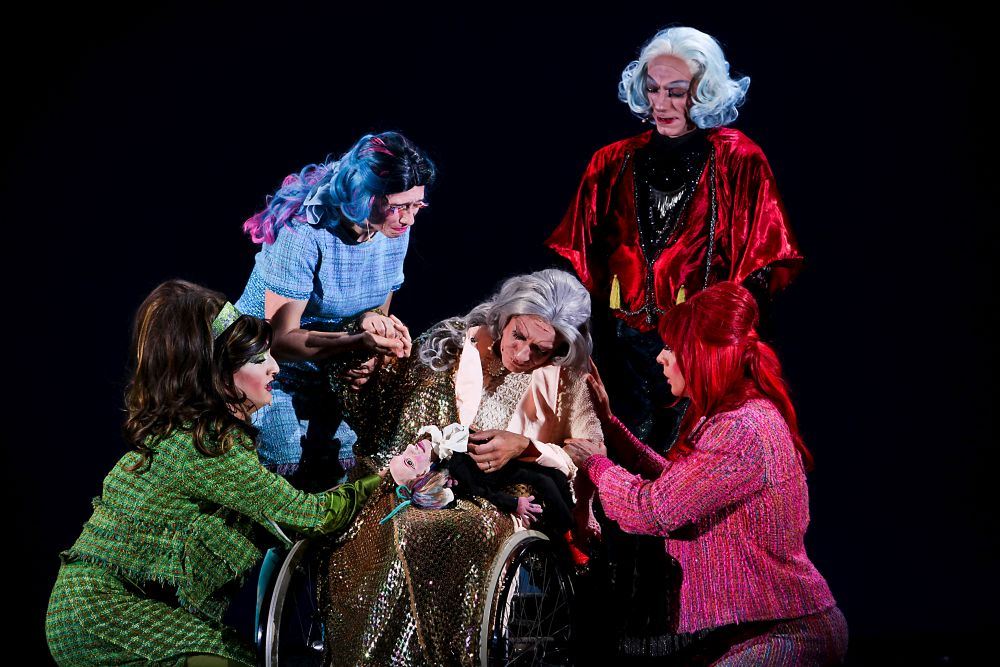 Questa compagnia sui generis, originale e stravagante ma allo stesso tempo profonda, intelligente ed eclettica sta portando in giro per i teatri italiani “Queen Lear” testo di Claire Dowie da William Shakespeare (traduzione di Michele Panella e Lorenzo Piccolo) con le musiche originali di Enrico Melozzi e ideato da Francesco Micheli.