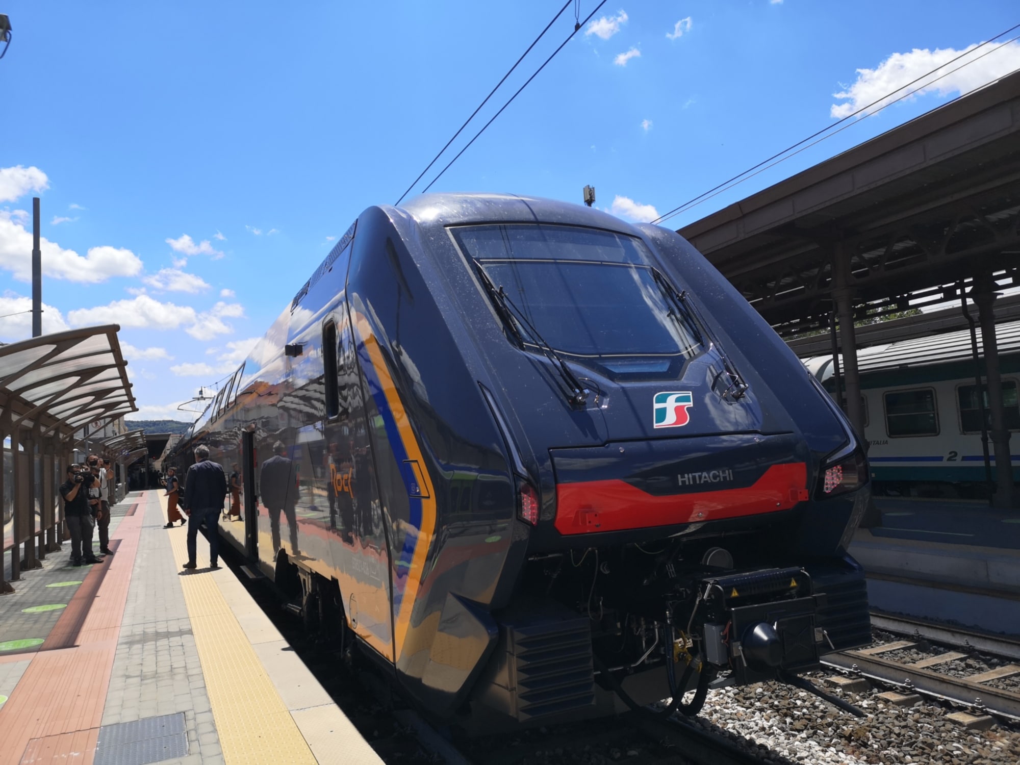 È arrivato alle 11:52 alla stazione di Arezzo il treno Rock da oggi ufficialmente in servizio sulla linea Aretina, si tratta di uno dei due modelli presentati nello stabilimento Trenitalia all’Osmannoro poche settimane fa (LEGGI).