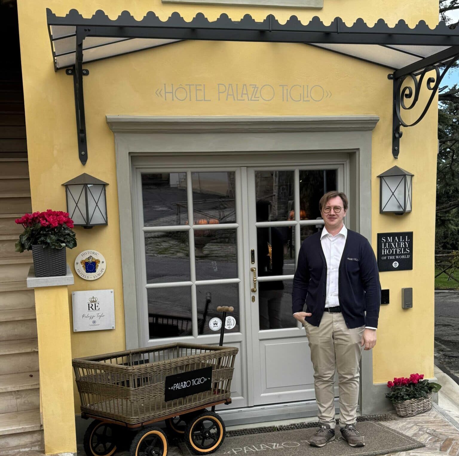 John davanti all’hotel Palazzo Tiglio – foto Raffaella Galamini