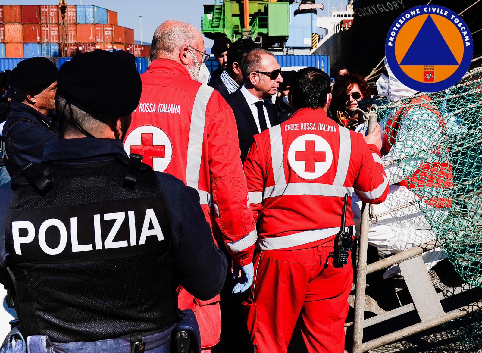 Anche l’assessora alla Protezione civile della Regione Toscana, Monia Monni, ha assistito alle operazioni di sbarco: “Queste persone sanno benissimo che attraversando il mare si può morire. Lo sanno bene, ma quello che c’è nella loro terra rappresenta una speranza ancora inferiore rispetto alla possibilità di sopravvivenza in viaggi che sono terribili. Queste persone non scappano solo dalla guerra, scappano anche dai cambiamenti climatici che sono sempre più pericolosi, sempre più dannosi, e che scaricano i nostri i modelli di sviluppo sbagliati sui più fragili”.