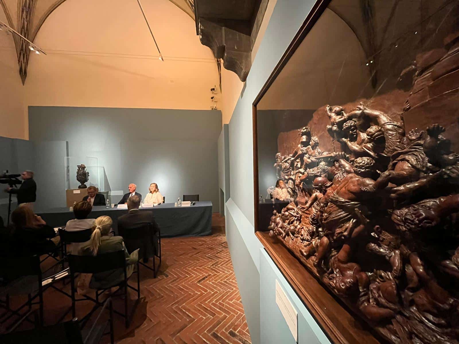 Tra le opere donate c’è anche la cera tratta dalla Flagellazione di Alessandro Algardi (1598-1654) che illustra la fortuna che il celeberrimo gruppo in bronzo dello scultore bolognese, attivo a Roma, continuò a godere fino al Settecento inoltrato. Vanno poi segnalati l’originalissimo Vaso con il Trionfo di Nettuno, ideato da Massimiliano Soldani Benzi nel 1721, e derivato dalle forme acquistate nel 1744 dal Marchese Carlo Ginori dal figlio dello scultore, Ferdinando, e il grande rilievo in cera di Giovan Battista Piamontini, con il Massacro degli Innocenti, da un modello di Giuseppe Piamontini.