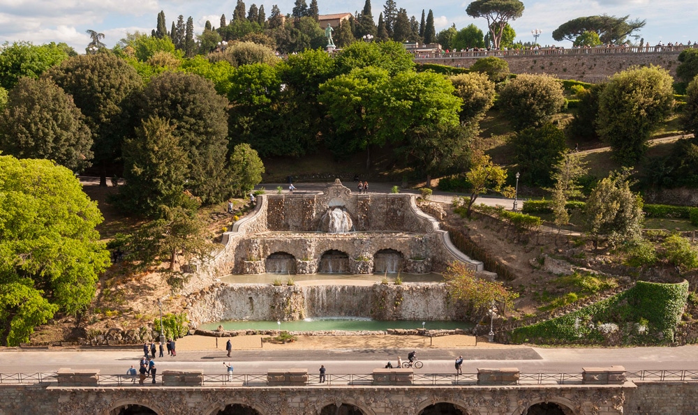 Questo aspetto è apprezzabile soprattutto nell’ideazione di piazze verdi, viali alberati e nel grosso intervento che portò alla creazione della meravigliosa scenografia di Viale dei Colli, con le Rampe, restaurate di recente, Piazzale Michelangelo ed altre aree, come il Giardino delle Rose, ad esso collegati. Fu un piano di riconversione in chiave green di una città che aveva mantenuto fino a quel momento un aspetto medievale e che nel suo antico tessuto urbano non prevedeva una distinzione tra aree pubbliche e private.