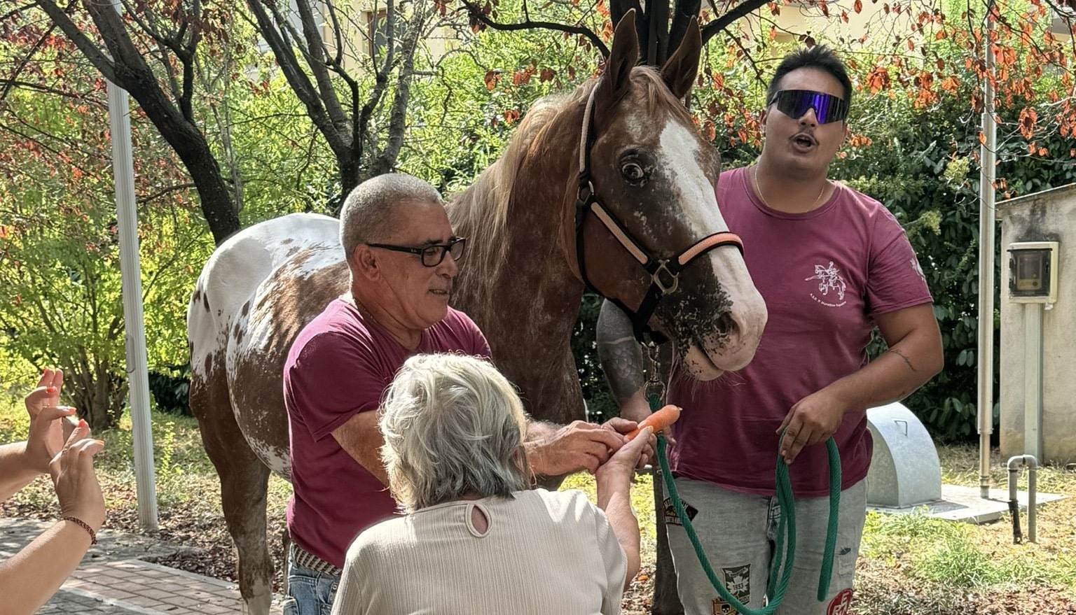 Date le difficoltà di far uscire dall’hospice Aurora, che si trova in carrozzina e non ha autonomia negli spostamenti, si è deciso di portare un cavallo nel giardino della struttura.
