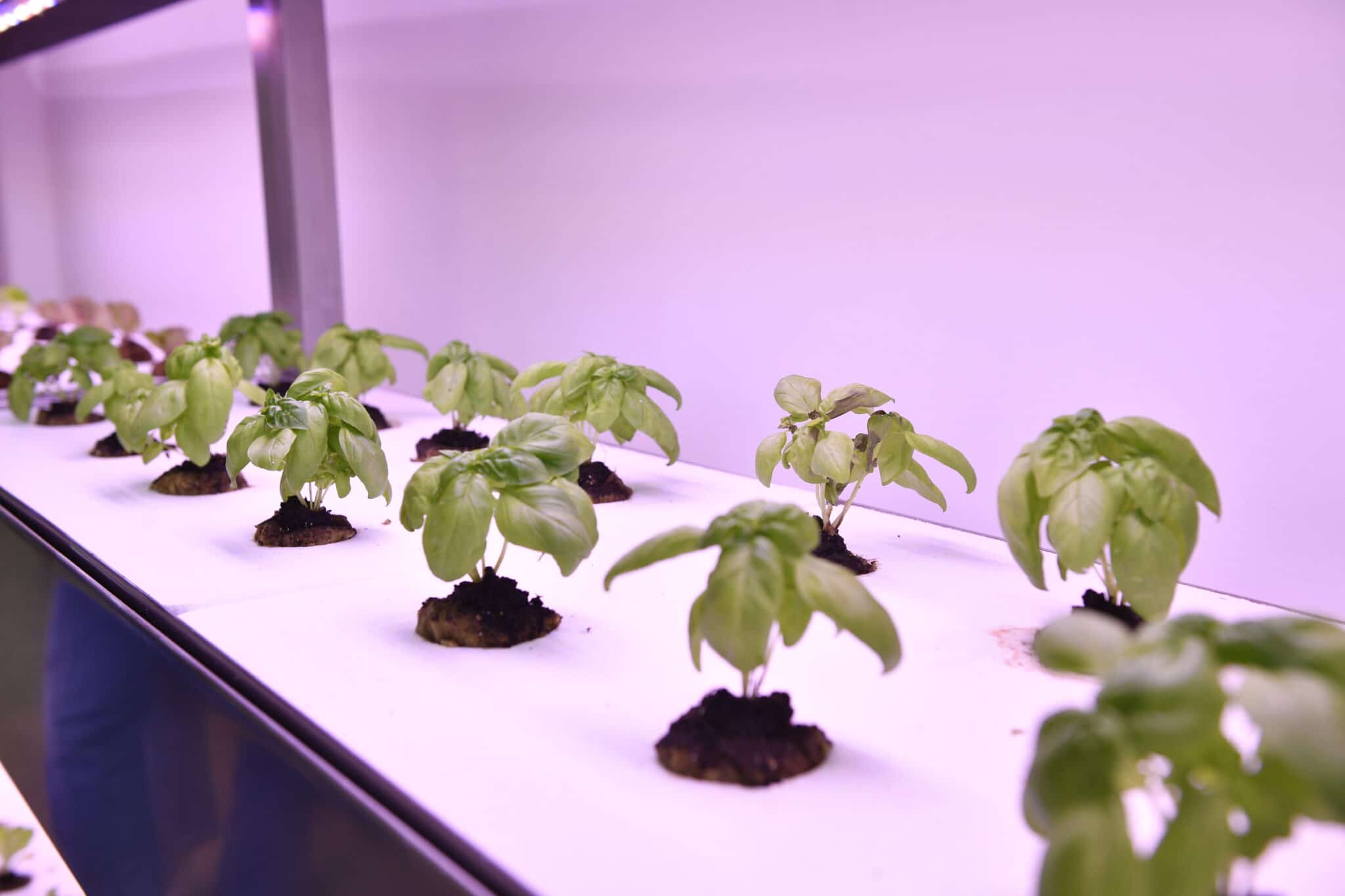 L’intero impianto è stato realizzato con materiali e componenti sostenibili, così come il sistema di illuminazione intelligente a led e il sistema di fertirrigazione. Lo spazio, ricavato da una ex sala riunioni, è stato suddiviso in modo da produrre piante da frutto e piante a foglia.