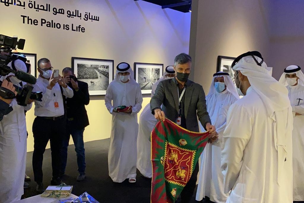 Lo spazio dedicato a Siena e al SIPA 2020 è stato il primo a essere visitato dallo sceicco Mohammed Al Qasimi, promotore dell’evento, prima di fare tappa in tutte le altre esposizioni. In occasione della visita dello sceicco Mohammed Al Qasimi alla sua mostra personale e agli scatti del SIPA 2020, Luca Venturi, contradaiolo del Drago, lo ha omaggiato con il fazzoletto della sua Contrada.