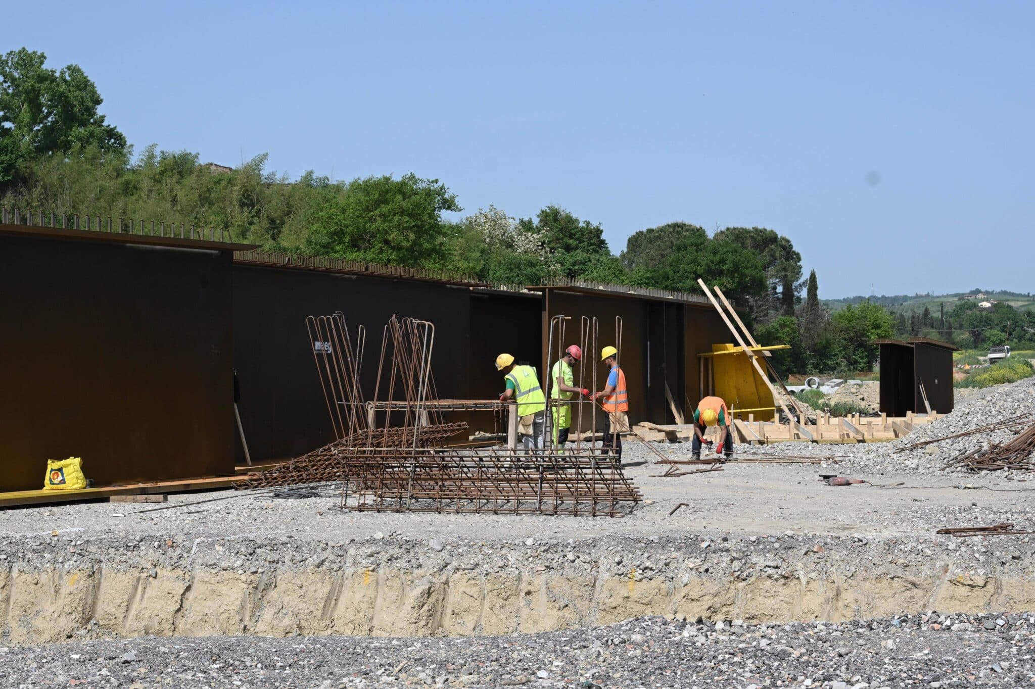 Sono già stati realizzati alcuni tratti di viabilità di servizio. Avanti anche con la realizzazione del sistema per lo smaltimento delle acque e col montaggio e completamento degli scatolari principali in calcestruzzo armato sui fossi minori. Procedono anche le opere preliminari alla realizzazione della cassa di laminazione Casino d’Elsa,