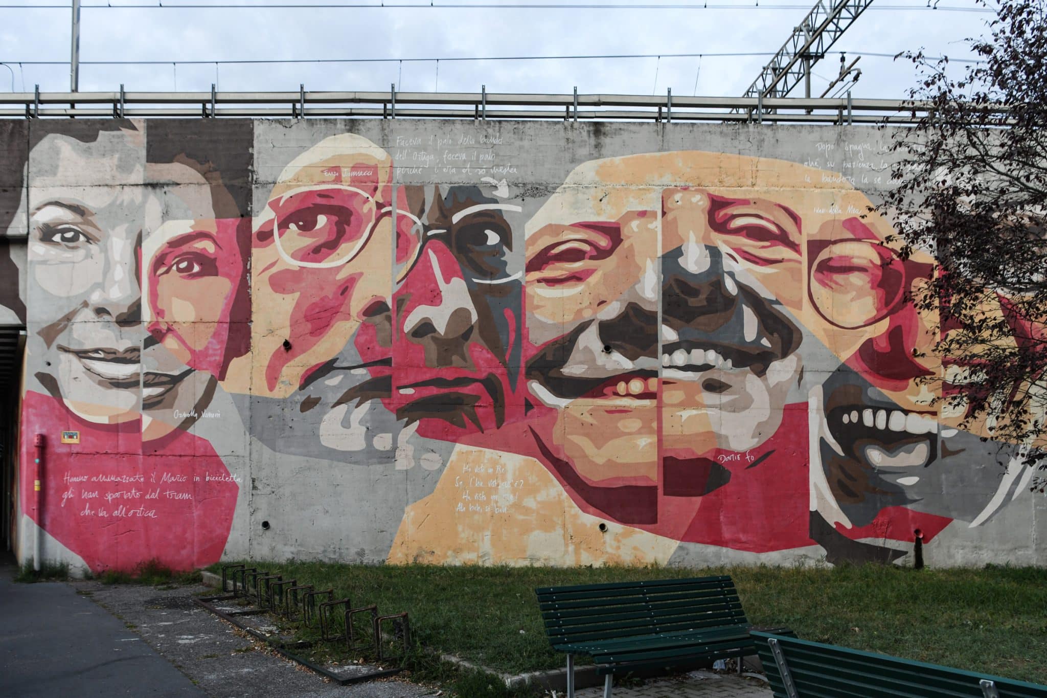 Il caso di studio scelto è stato il murales ‘Musica Popolare‘ (2017) del collettivo Orticanoodles nel quartiere Ortica di Milano. L’opera raffigura alcuni protagonisti della musica e della cultura milanese tra cui Dario Fo, Ornella Vanoni, Enzo Jannacci e Giorgio Gaber. Un lavoro che si estende per quasi 400 metri quadrati su un cavalcavia ferroviario ed è divenuta un simbolo identitario per la città.