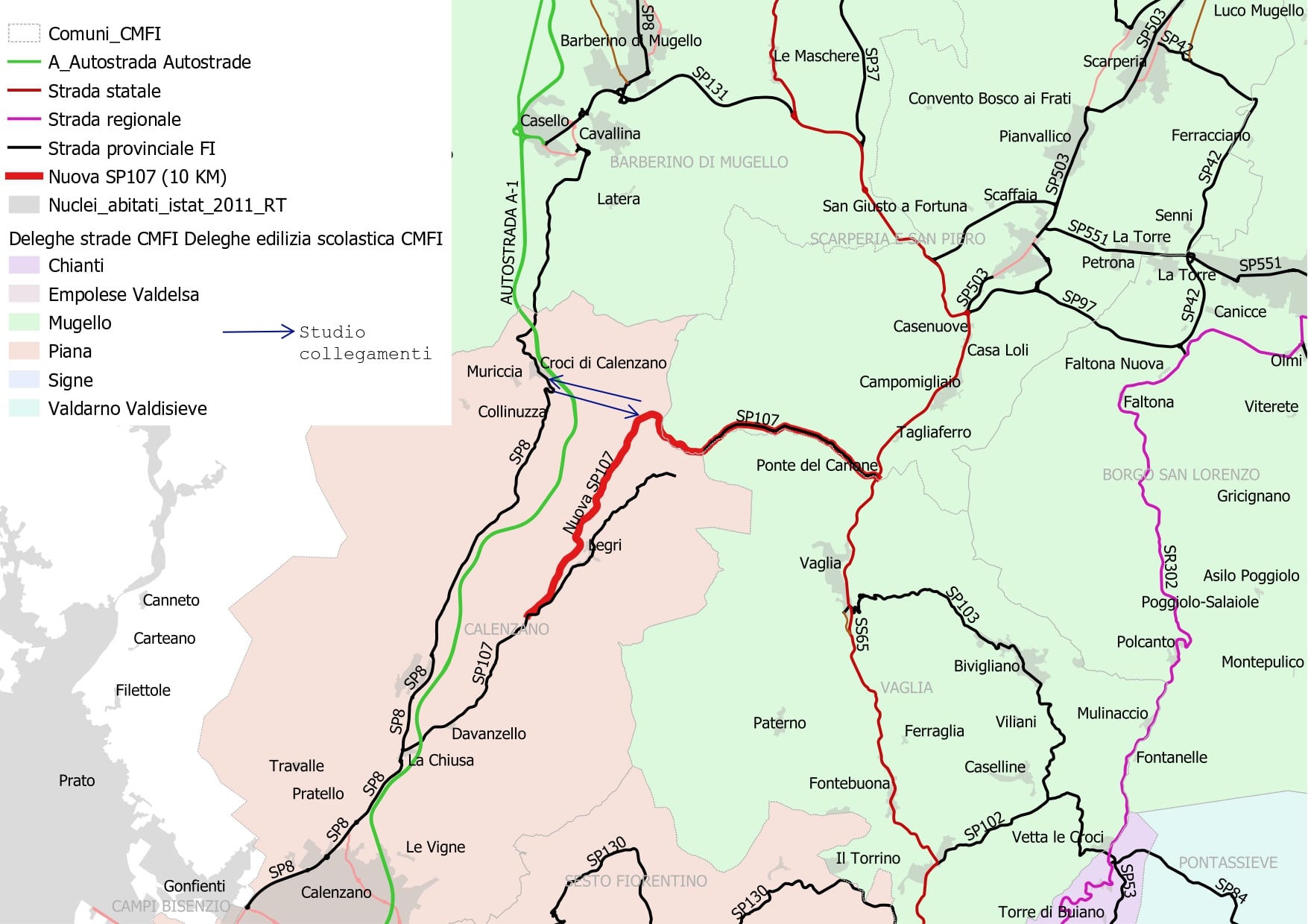 Questa alternativa darà nuova vita alla provinciale 107, la strada che dalla strada della Futa, poco dopo Vaglia nella valle del Carza, si collega alla provinciale 8 ma senza necessariamente passare da Legri e la valle del torrente Marina ma intercettando magari con un nuovo tratto la provinciale all’altezza de Le Croci.